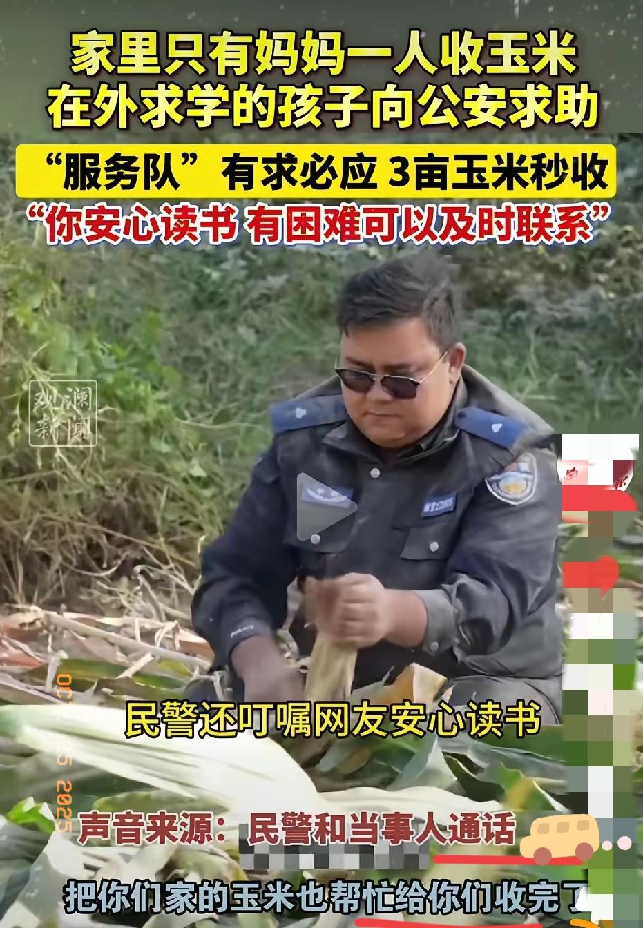 新疆一名在外求学的大学生 给当地的民警留言 说家里的三亩玉米没人收, 只有老妈一个人在家 希望警察同志能帮帮忙。 看到民警真上门帮着收完玉米,还让孩子安心读书,谁能不觉得暖?这哪是处理公务,分明是把老百姓的难处当自家事扛。但点赞归点赞,心里也忍不住犯嘀咕:新疆地域广,民警出个警动辄几十上百公里,本就比别处辛苦,要是把精力耗在收玉米这类事上,真遇到紧急警情,怕是会误了大事。 这不是说民警不该帮,而是这份“暖心”该有更合适的承接方式。或许社区互助、志愿者支援,或是当地搭建个便民帮扶平台,才能既解决群众难题,又让民警把力气用在刀刃上。毕竟咱们想夸的是民警的为民心,更希望他们能专心守好大家的平安。 你觉得,该怎么搭建这样的帮扶渠道,既留住这份暖,又不耽误民警的主业呢?