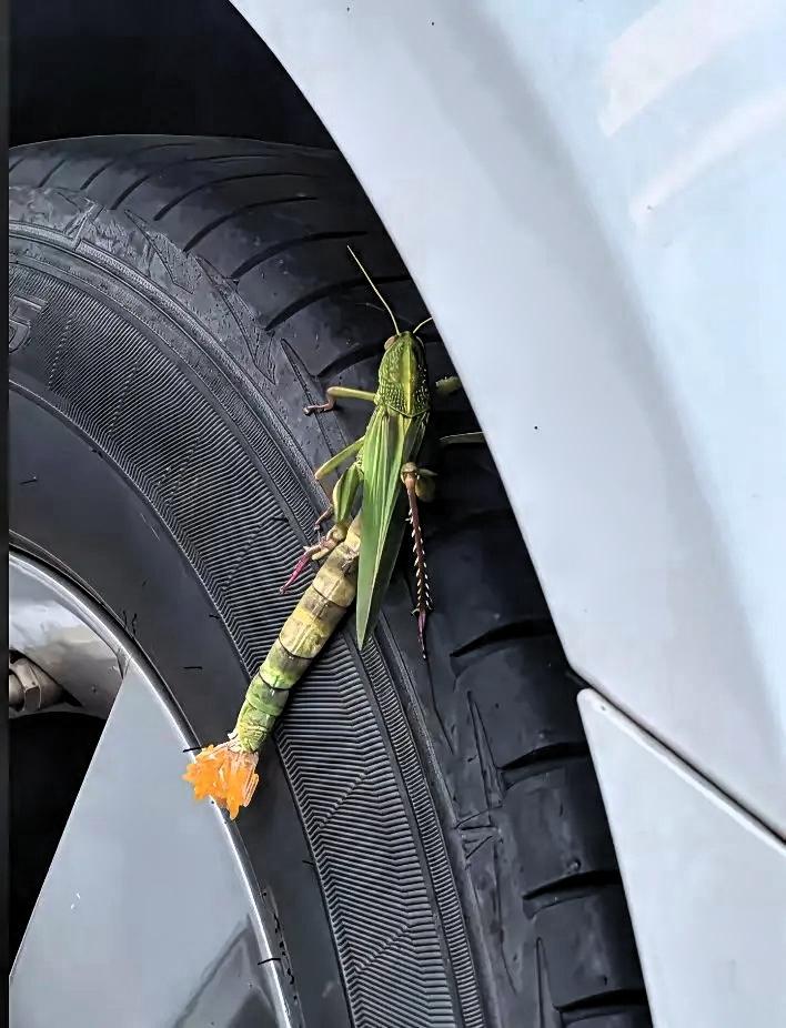 见过这么奇怪的虫子吗? 汽车轮胎上趴着的这只“怪虫”, 乍一看是蚂蚱的身子,尾巴却带着橙色花状结构,这是生病变异了? 它大概率是被“改造”过的! 现在网友脑洞大,把不同生物的特征P到一起博眼球,自然界哪有虫子长这样?这就跟那些P明星同框的图一样,都是创意玩法。这种“合成虫”能火,不就是因为大家就爱这种打破常规的新奇感嘛。 不过也得提醒,别被这些创意图骗了去,真要研究生物,还得看真实物种。你还见过哪些网友P的“奇葩生物”?来分享下!