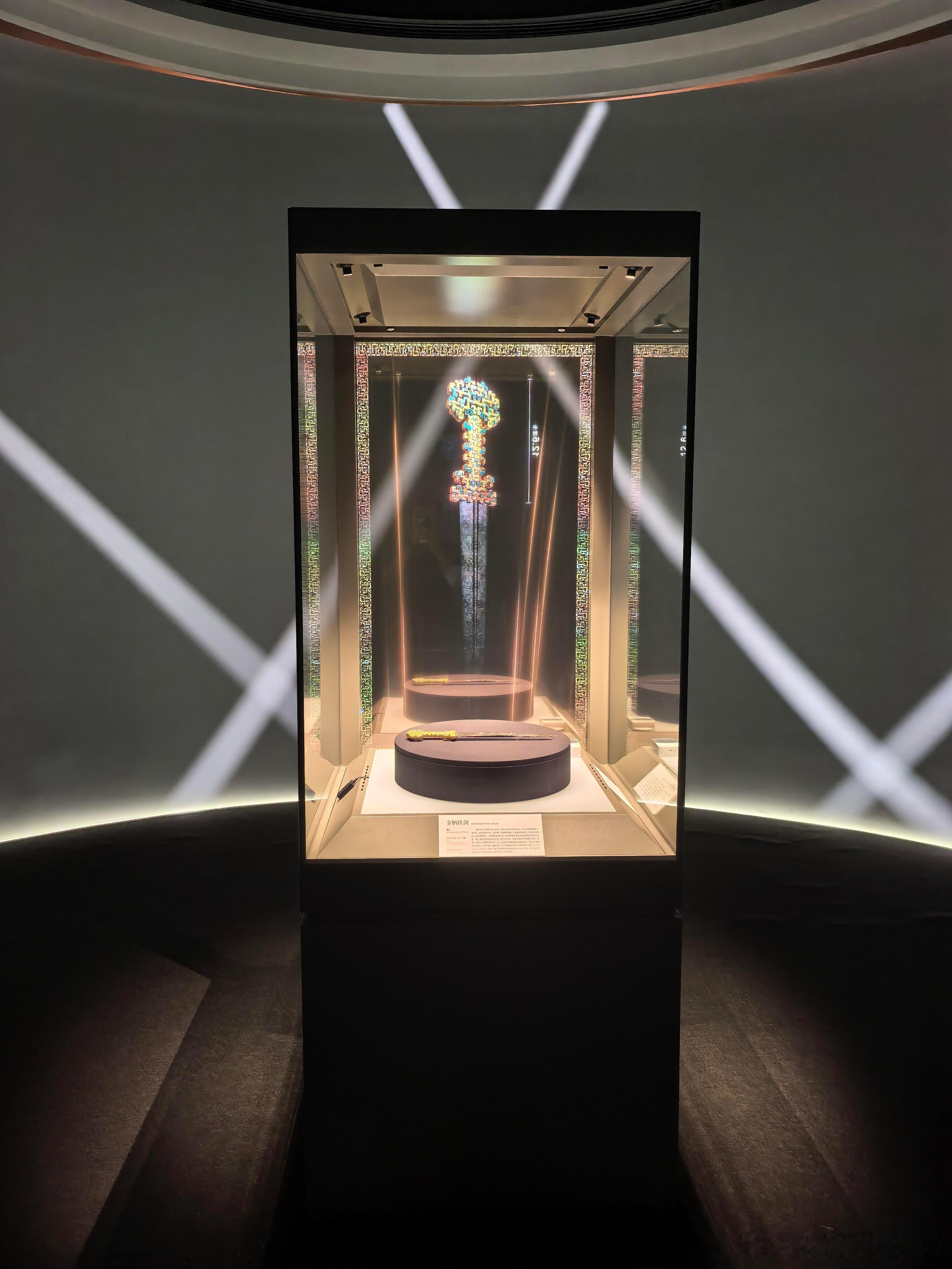 现在这把剑在苏州博物馆西馆“兵器”特展展出,展出的还是绿松石最多的一面,去看的话绝对能被它的华丽闪到眼。不得不说,老祖宗的审美和工艺太绝了,这么个“小墓”里都能挖出这种宝藏,大秦的底蕴果然不一般✨!