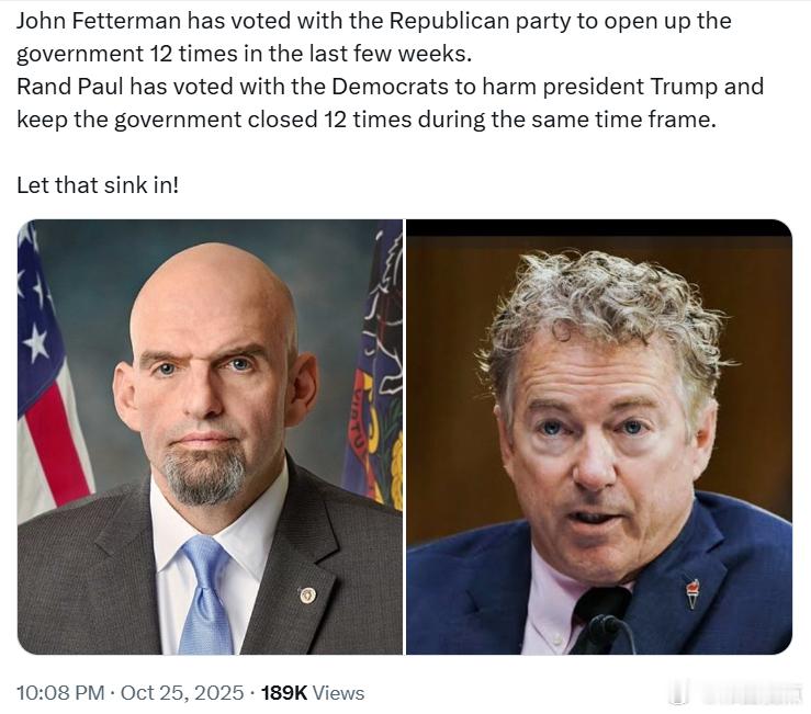 兰德·保罗在同一时期12次与民左党一起投票,阻碍特朗普总统并让政府保持关闭。