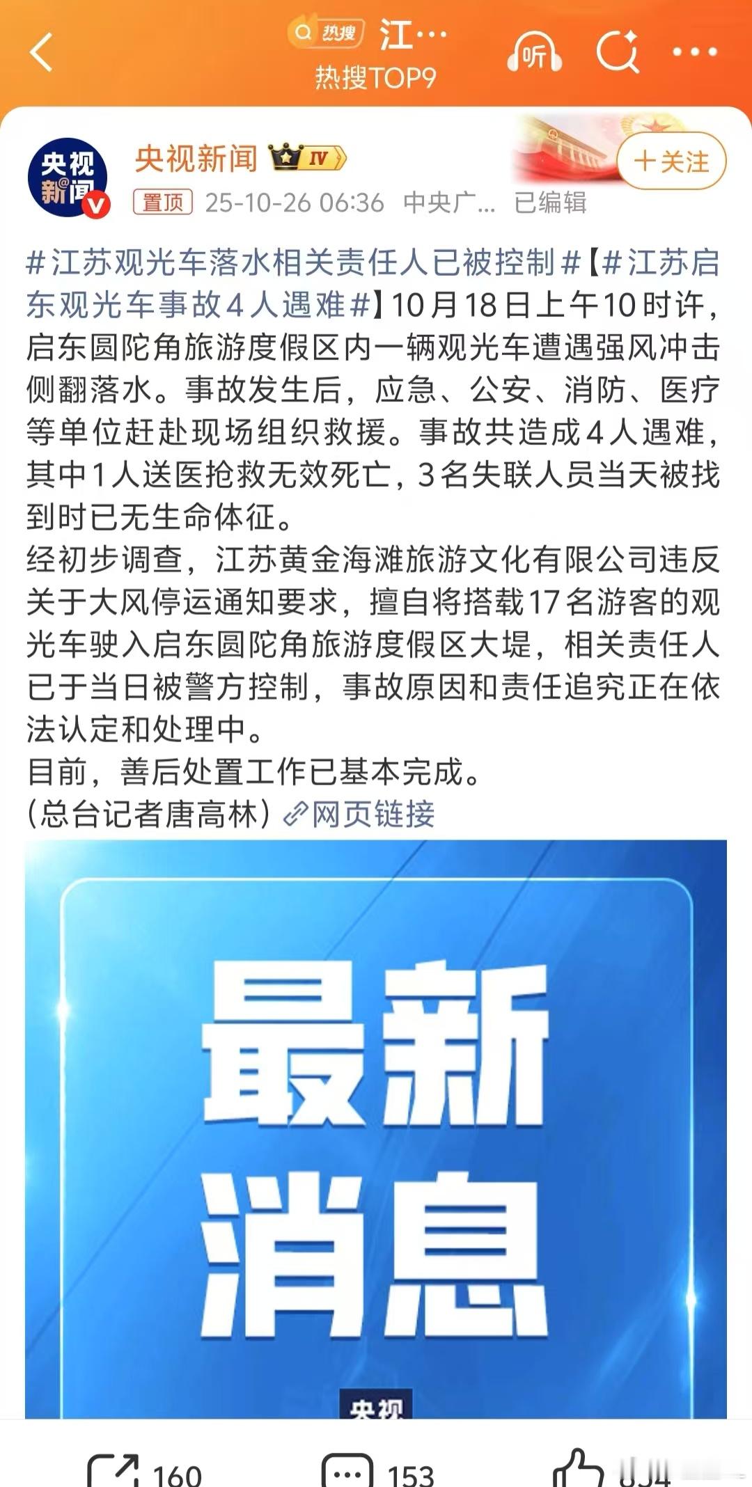 官方通报观光车落水致4人遇难江苏观光车落水相关责任人已被控制这景区不是拿