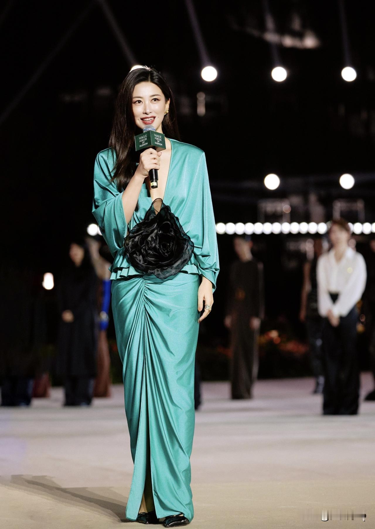 朱珠穿衣好大胆,衣领开叉直接到肚脐眼。衣服中间还别了一朵好大好大的花,格外抢眼。