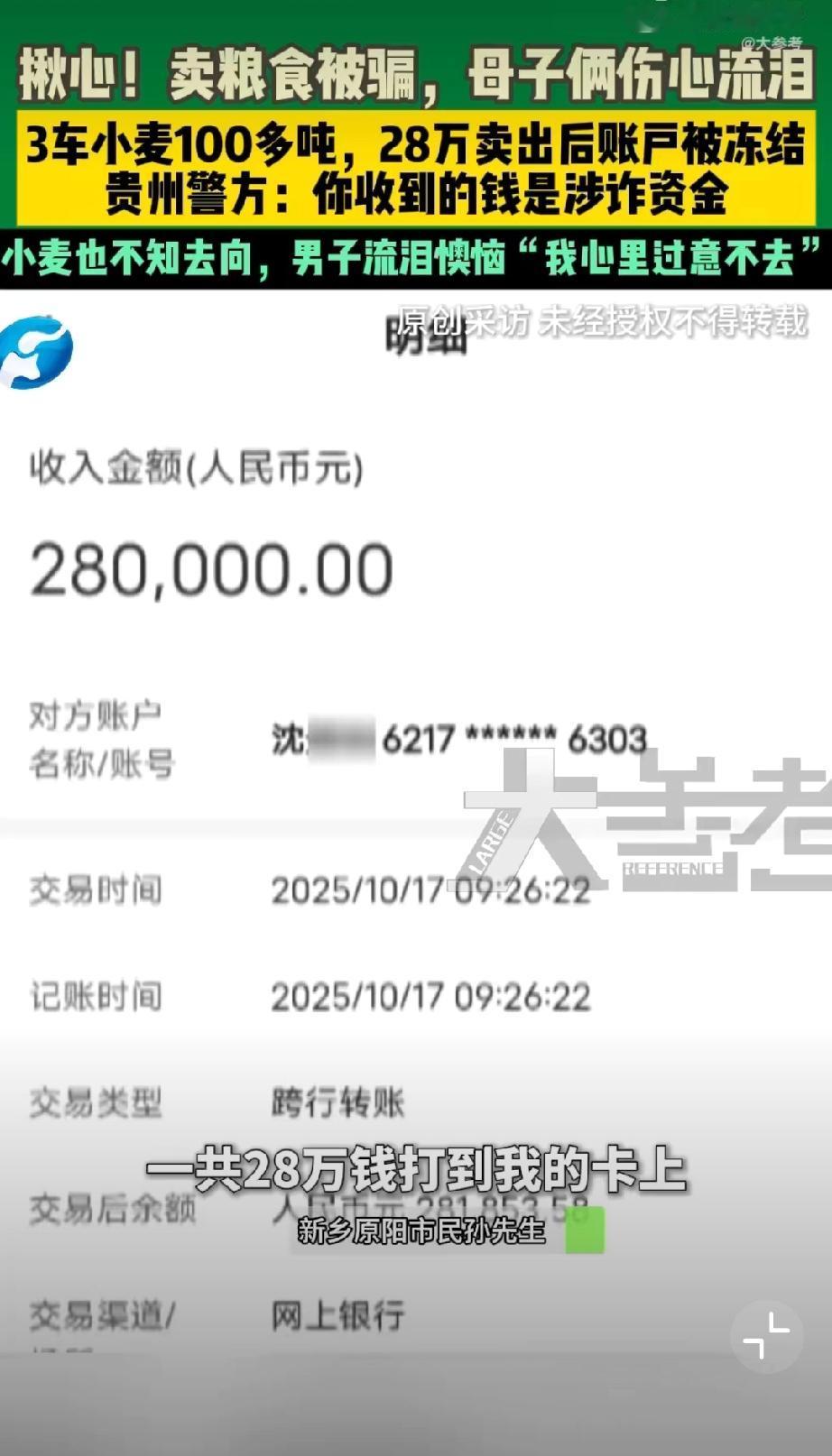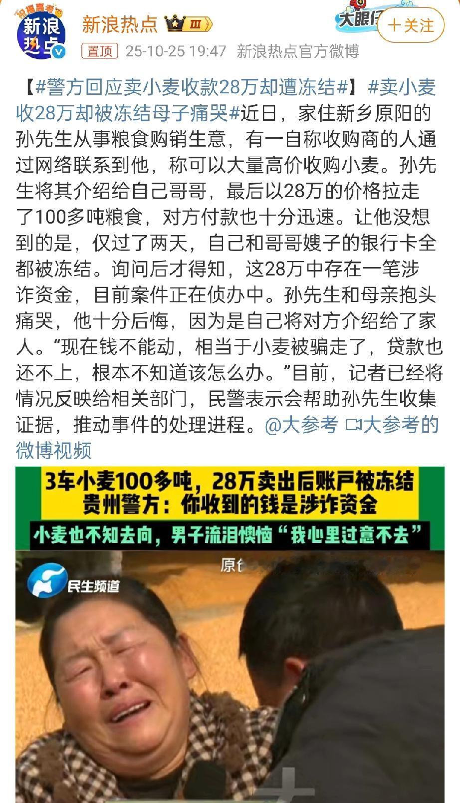 卖小麦收28万却被冻结母子痛哭。此类事件凸显涉诈资金冻结的精准性难题,反诈追赃本是民心工程,但个别情况下却成了堵心工程,让无辜群众沦为受害者。商户与普通群众缺乏专业鉴诈能力,钱货两清的正常交易被冻结,让普通人承担过高核实义务既不现实也不公平。这种情况时有发生,解冻流程繁琐,往往耗时数月,严重影响群众生计。打击电诈的核心在精准溯源打源头,唯有将技术手段用在追缉真凶上,完善善意取得认定机制与快速解冻通道,才能既守住群众 “钱袋子”,又能护好无辜者的正常生活。 是什么因素导致一些农民丧失种地积极性 电诈现象