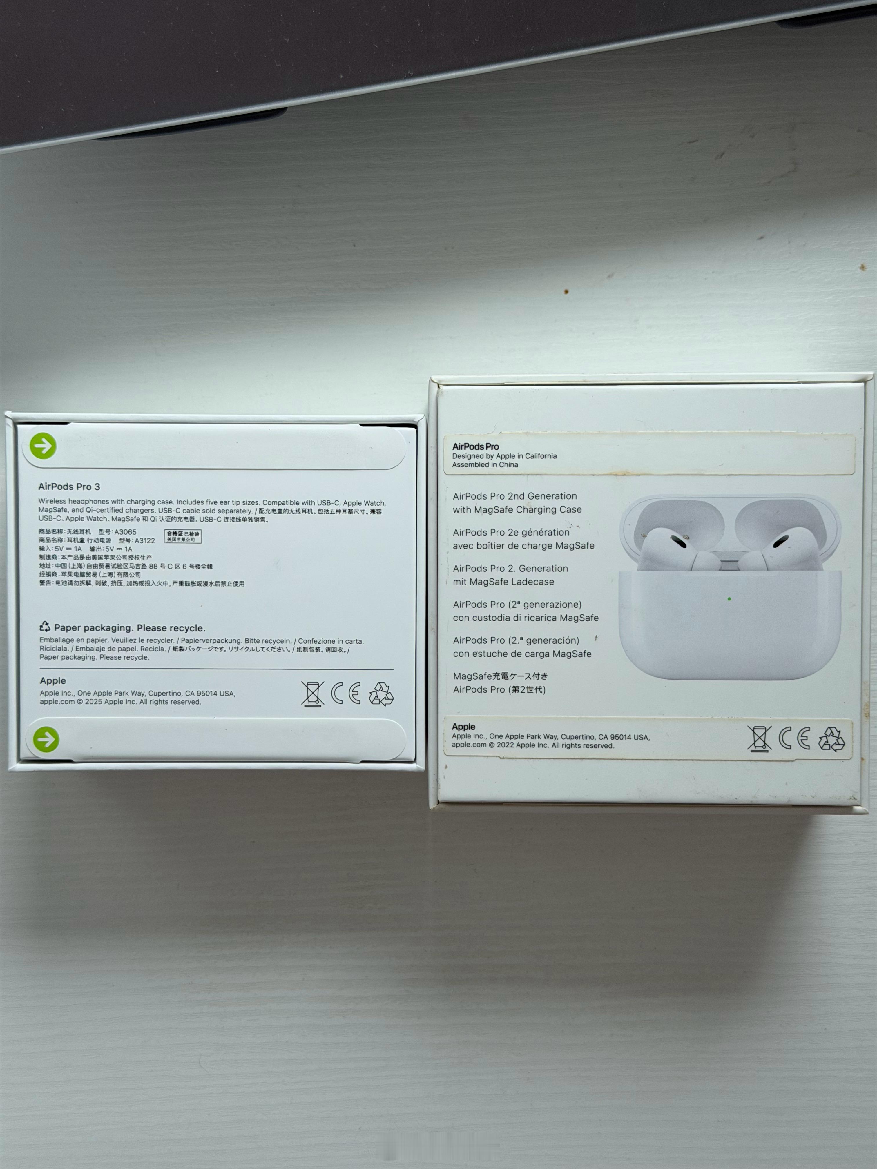 Airpods Pro 3包装对比2代明显缩小了一圈