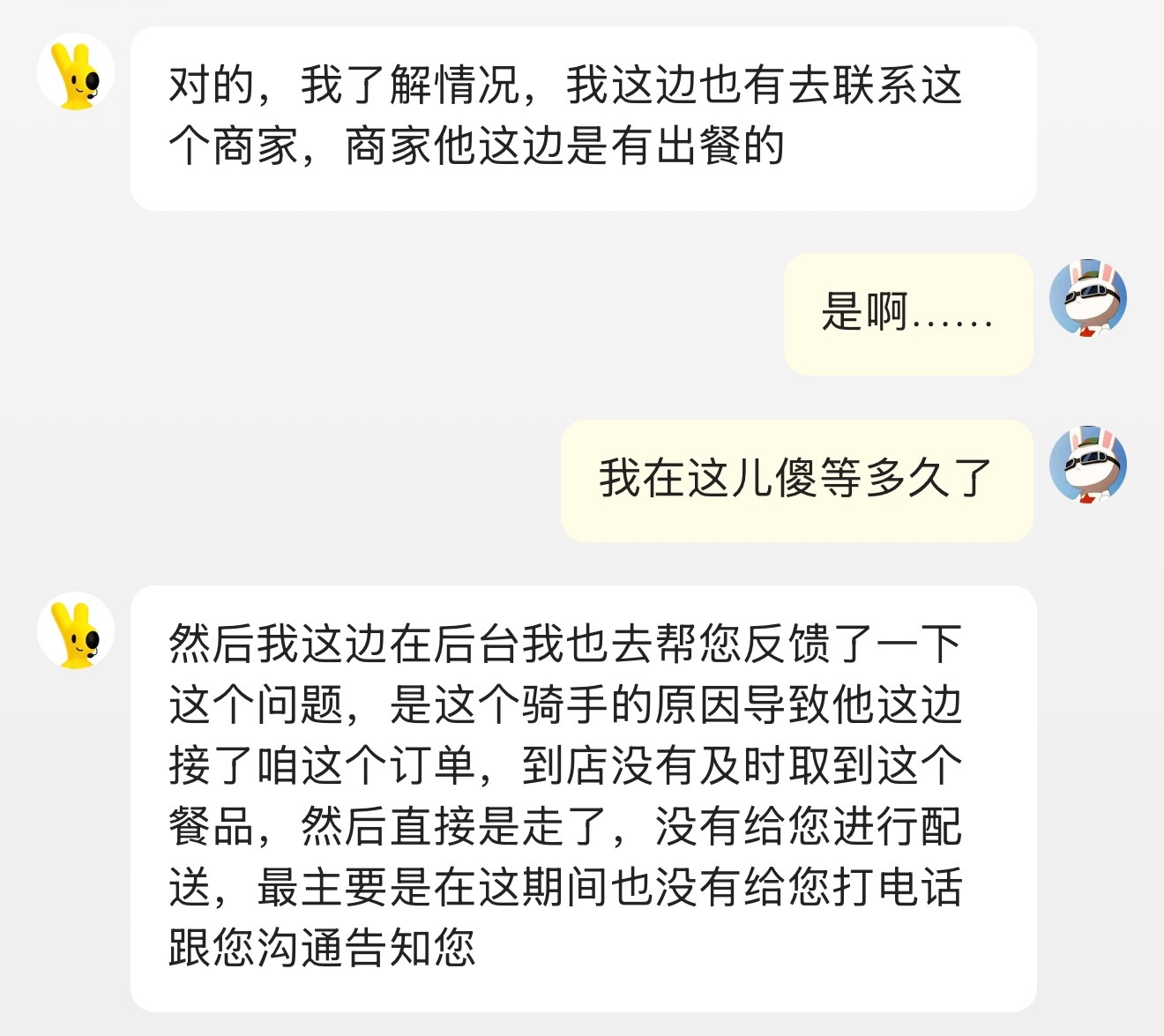 下了两个一模一样的外卖订单,A订单到了有一阵子了,B订单还处于“未取货”,问了骑手说商家不给出餐,等了10分钟越想越不对,为什么A这么快B这么慢?随即我和门店沟通,被告知出餐有一阵子了,骑手估计是单子太多一直不来,然后两头骗。