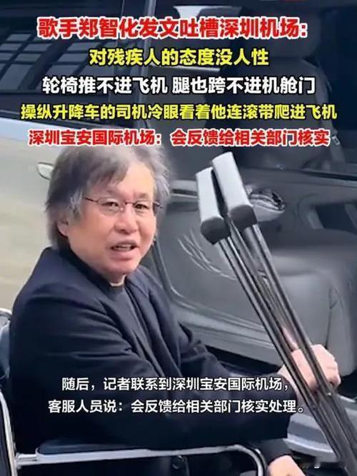 这事儿说白了,一个明星的吐槽能闹这么大,主要是戳中了不少人的痛点。 郑智化大家都不陌生,《水手》那首歌太经典了,他本人身残志坚的形象又特别正面。结果这么一个人,在深圳机场居然得“连滚带爬”才能上飞机,这画面感太强了,冲击力十足。普通人看了会想:连他都会遇到这种待遇,那一般行动不便的人出门得有多难?一下子就共情了。 机场的无障碍设施,问题可能不光在“有没有”,更在“能不能用”、“让不让用”。规定是死的,人是活的。这次事件看起来,不是机场完全没有相关服务,而是现场的工作人员可能太死板,或者培训不到位,缺乏主动帮忙的意识。硬件摆在那儿,软件(人的服务)没跟上,等于白搭。 这其实不是深圳一个机场的问题,很多城市的公共场所都有类似情况。坡道也修了,无障碍卫生间也建了,但可能平时锁着,或者堆满了杂物,真到用的时候根本用不了。说白了,还是没真正从使用者的角度去考虑问题,重视程度不够。 深圳机场这次回应算快的,当天就道歉并说要核实,态度是好的。但大家更想看到的,不是一次性的危机公关,而是整个服务流程能不能真的改好。这次因为是个名人曝光了,所以被重视,那普通旅客遇到类似麻烦,会不会就被无声无息地忽略过去了? 说到底,一个社会的文明程度,看它怎么对待弱势群体就知道了。大家关注这件事,也是希望我们自己以后万一老了、病了,或者临时行动不便的时候,在外面也能被善待,能有点尊严地出行。
