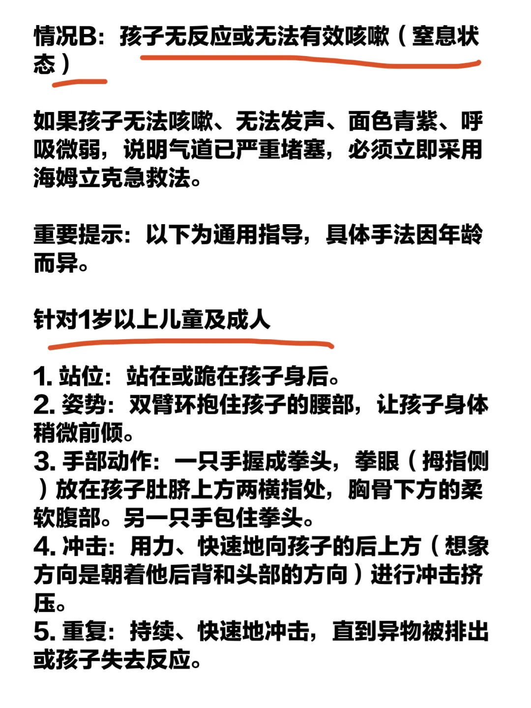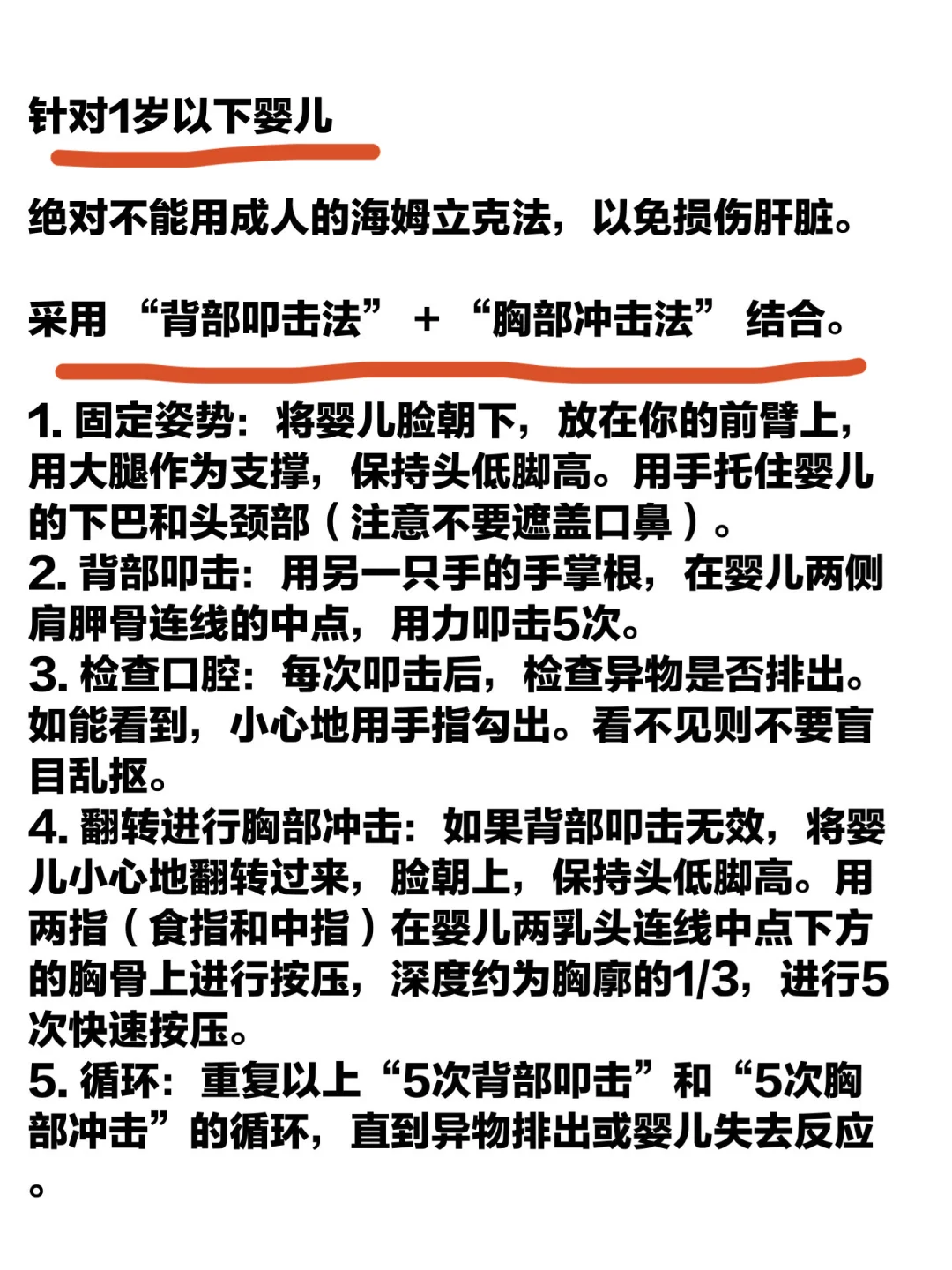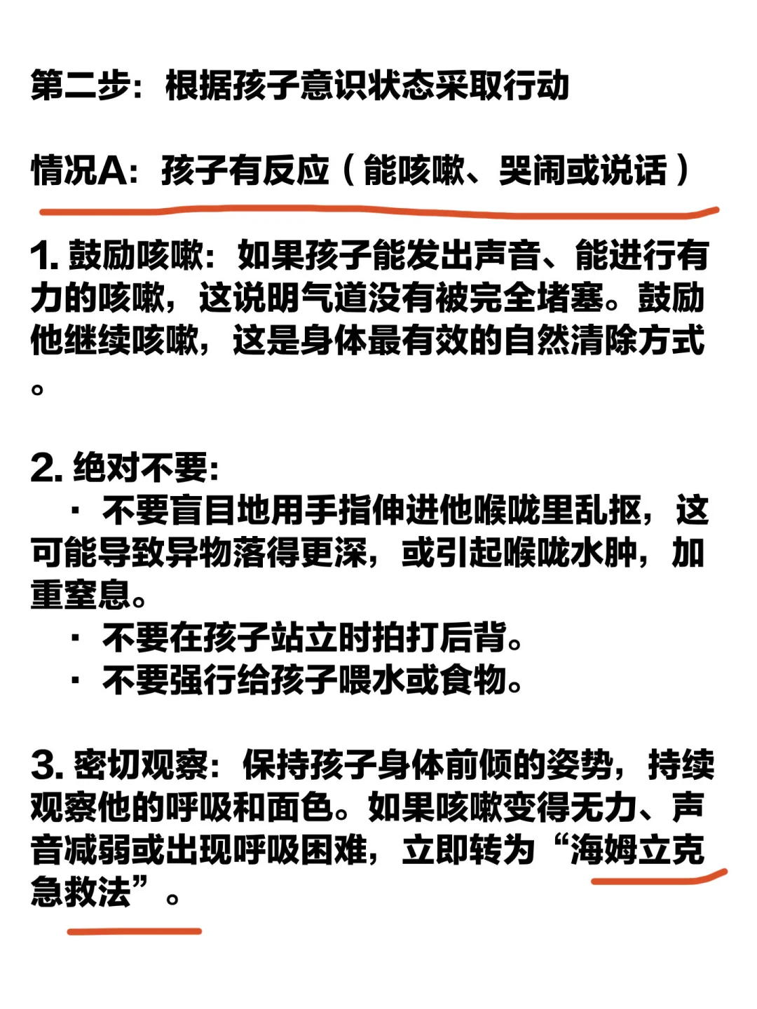 1. 避免给5岁以下儿童食用坚果、果冻等高风险食物。 2. 将小物件放在儿童接触不到的地方。 3. 教育孩子不要将非食物物品放入口中。 4. 孩子进食时要保持安静,避免哭闹、大笑或奔跑。 5. 选择适龄玩具,定期检查是否有小零件松动。建议家长都学会海姆立克急救法 若怀疑孩子发生支气管异物时,家长要保持冷静,可立即采取以下措施: 1.1岁以下婴儿:采用背部拍击法:将婴儿面朝下放在前臂上,头部低于胸部,用手掌根部快速拍击肩胛骨之间的区域5次。 如果无效,改用胸部冲击法:将婴儿翻转,面朝上,用两指快速按压胸骨下半段5次。 2. 1岁以上孩子:站在孩子身后,双手环抱其腰部,一手握拳,拇指侧放在肚脐上方,另一手抓住拳头,快速向内上方冲击。 在进行急救的同时,要立即拨打急救电话。即使异物排出,也要送医检查,因为可能仍有残留或损伤。
