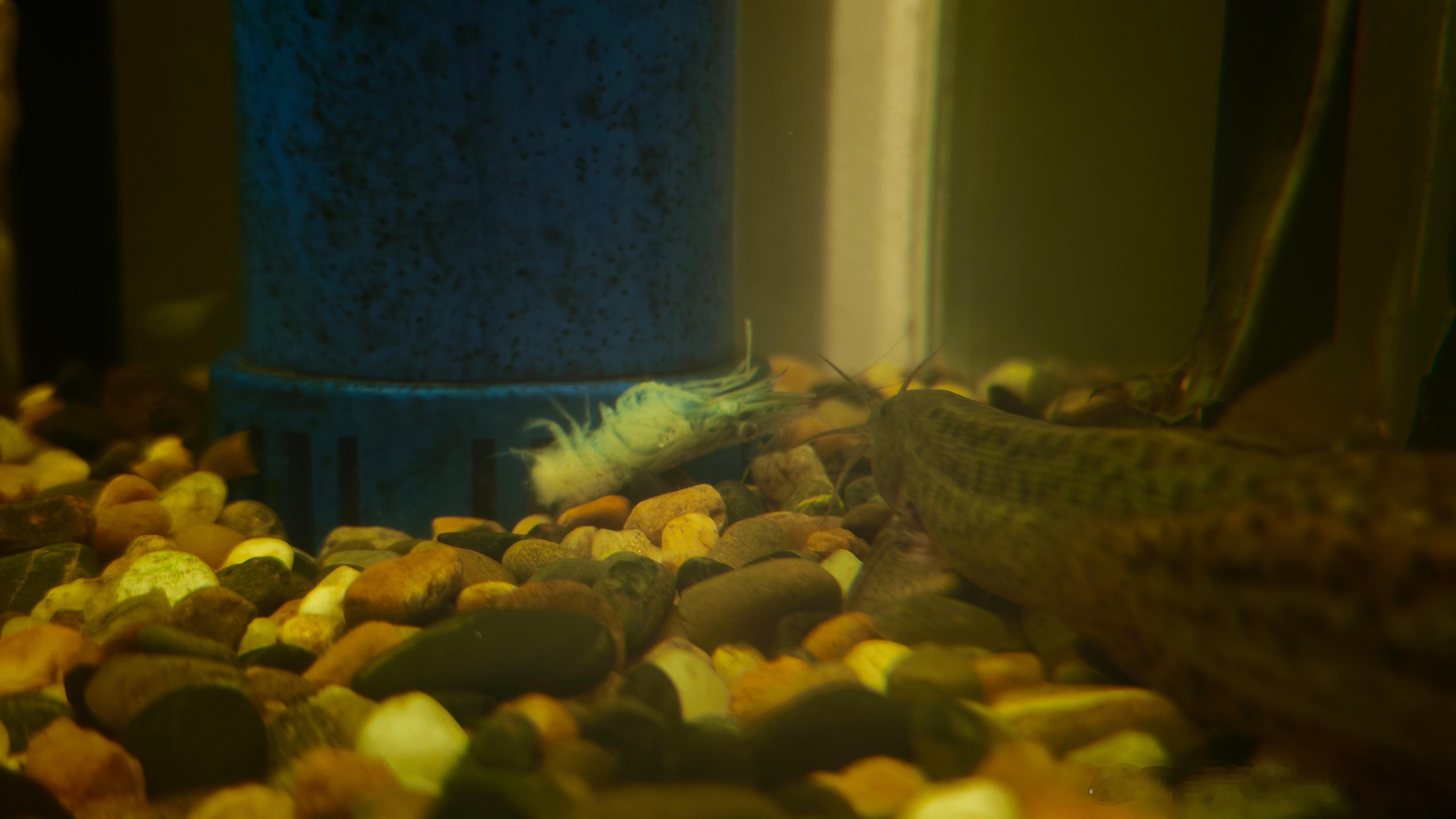 今天菜市场赶海赶来一些小虾和一条小鱼。结果一下午功夫缸里就出现两个虾头了……肇事者应该是马口。希望小虾们能隐藏好自己,在这里生活下来。