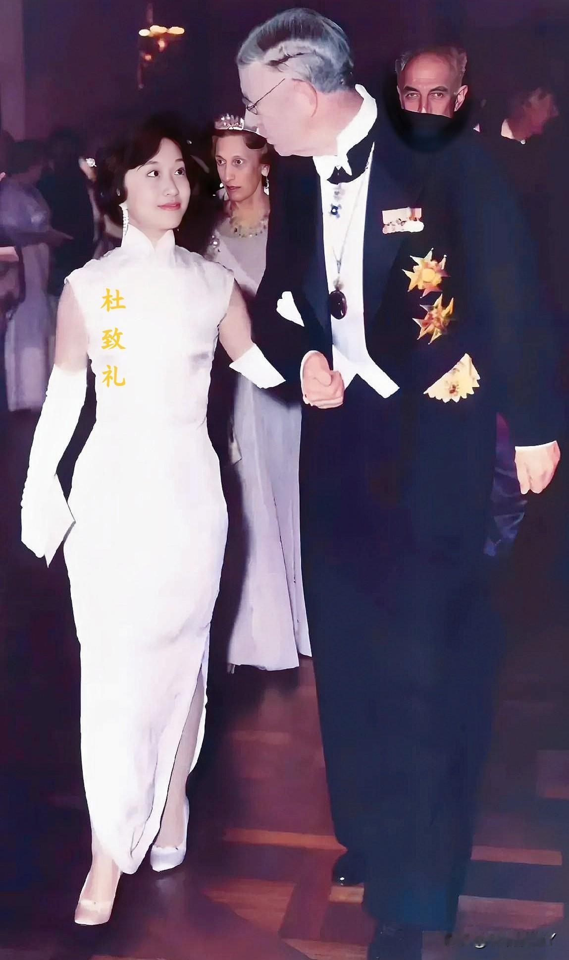1957年,手挽瑞典国王出席丈夫杨振宁诺贝尔颁奖仪式的杜致礼,时年30岁。优雅灵动,尽显东方美!