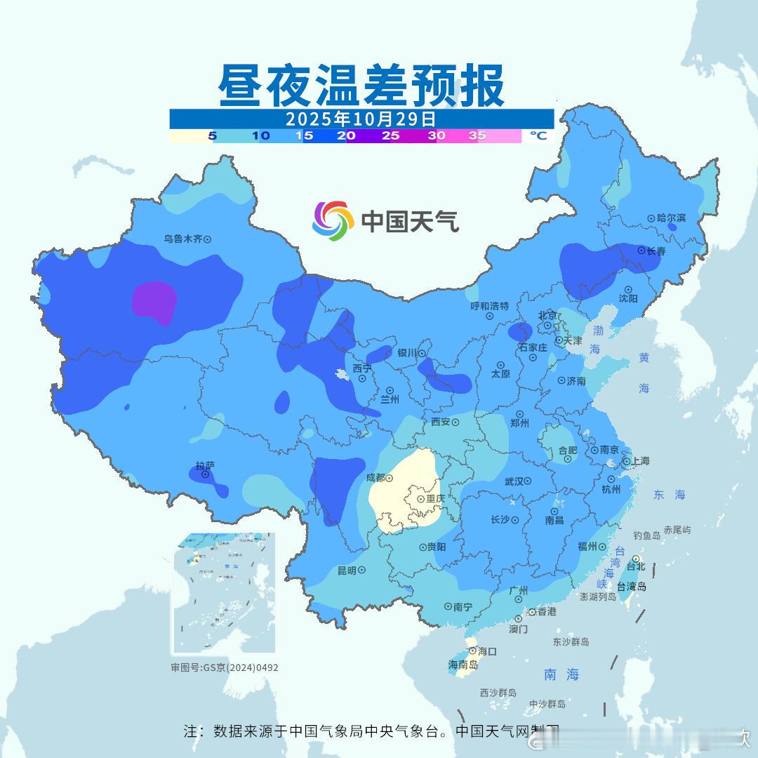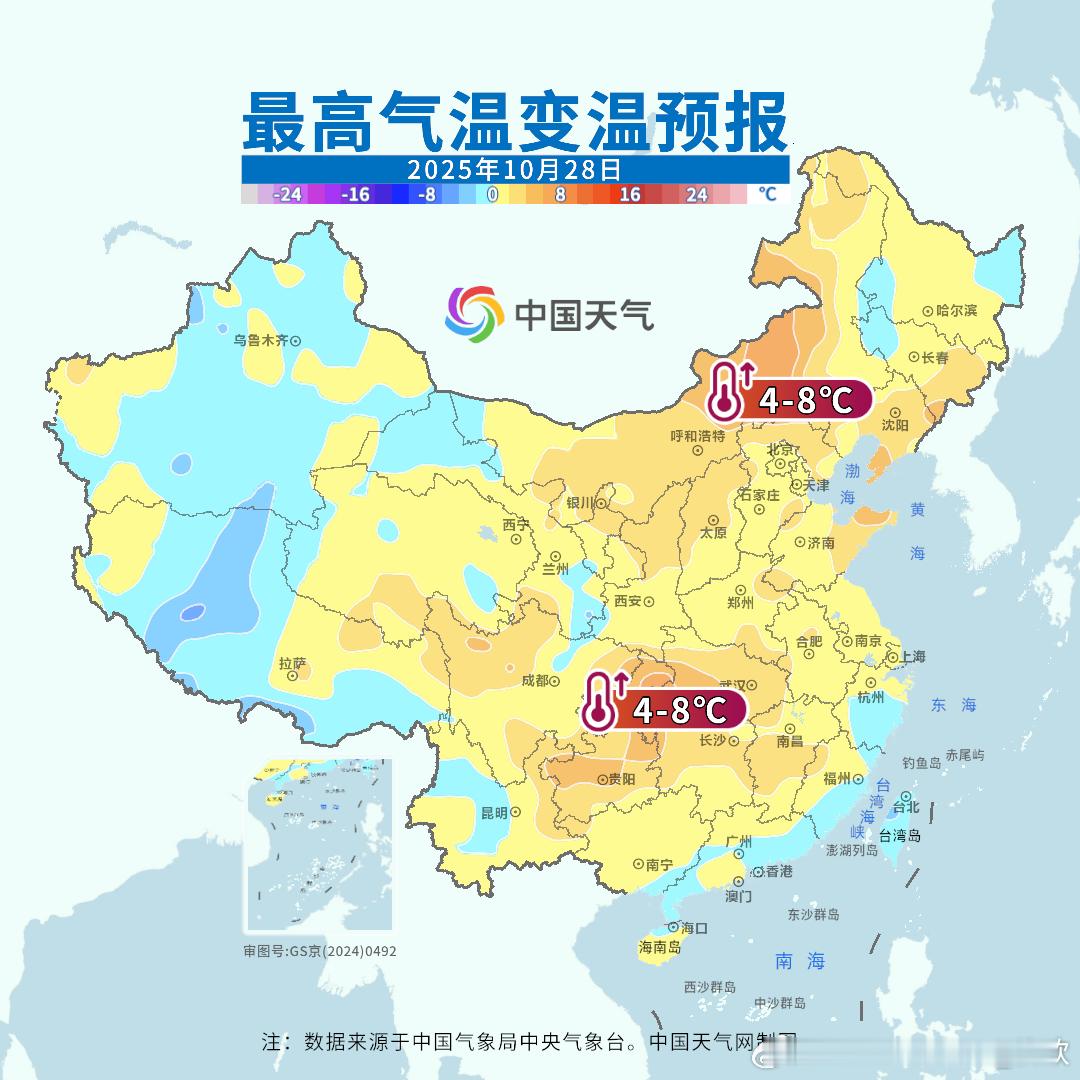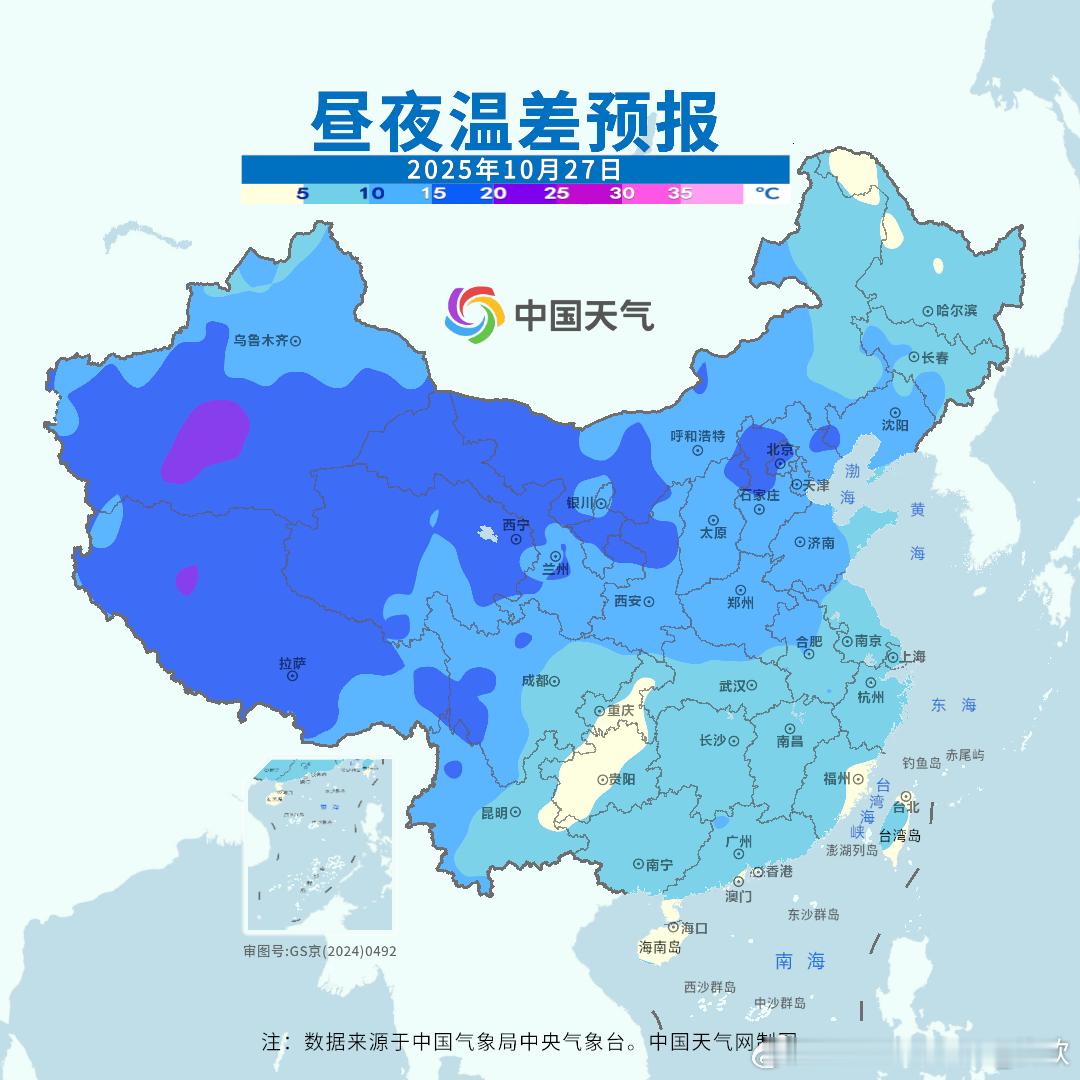 【气温——昼夜温差加大】未来3天,气温总体上升温比降温多,白天升温比夜间升温多,因此昼夜温差会加大,不仅北方,南方部分城市温差也能超10℃。比如28日武汉11-23℃,温差12℃,贵阳8-19℃,温差11℃。常年霜降期间,就是下半年昼夜温差最大的时期。此时温差加大也不意外。