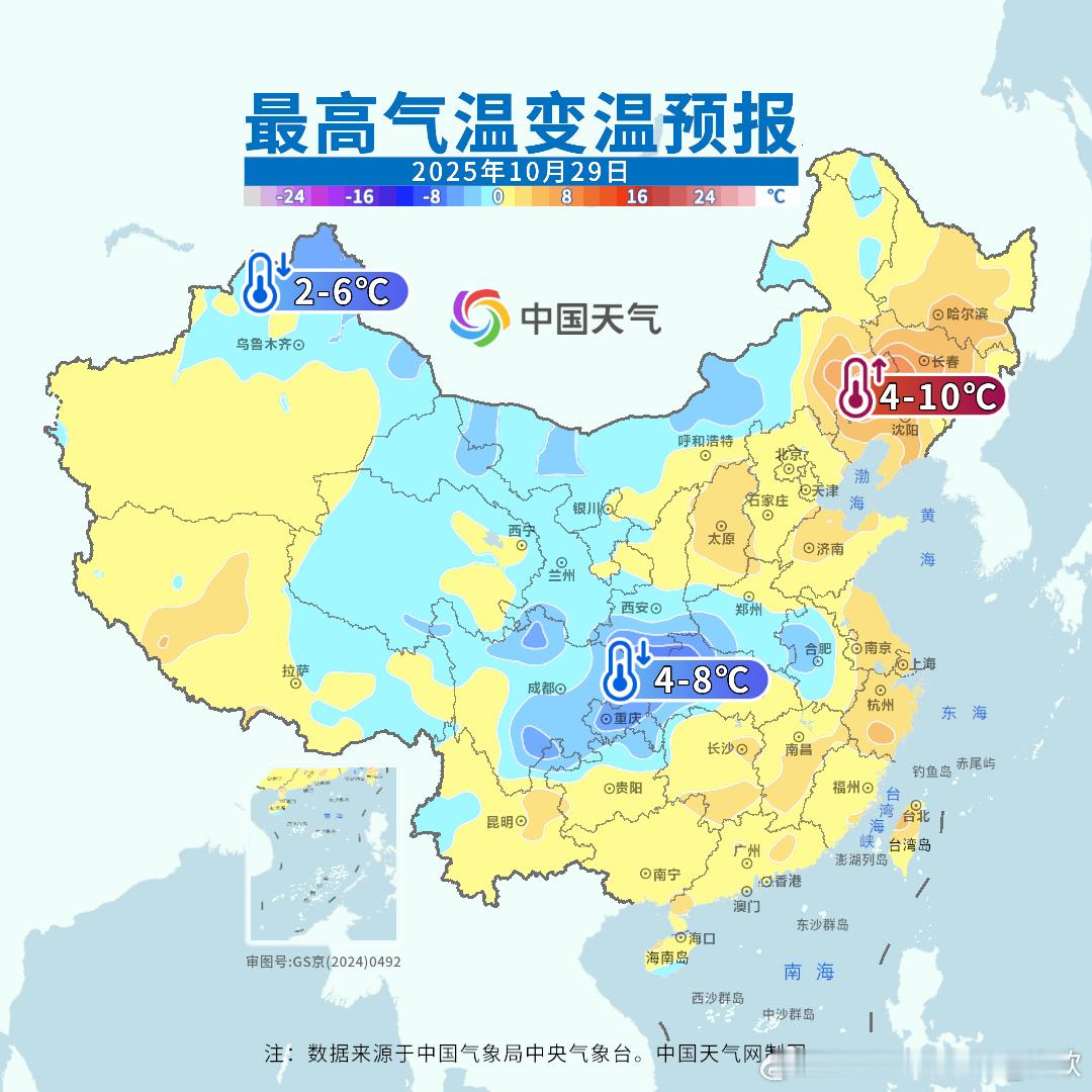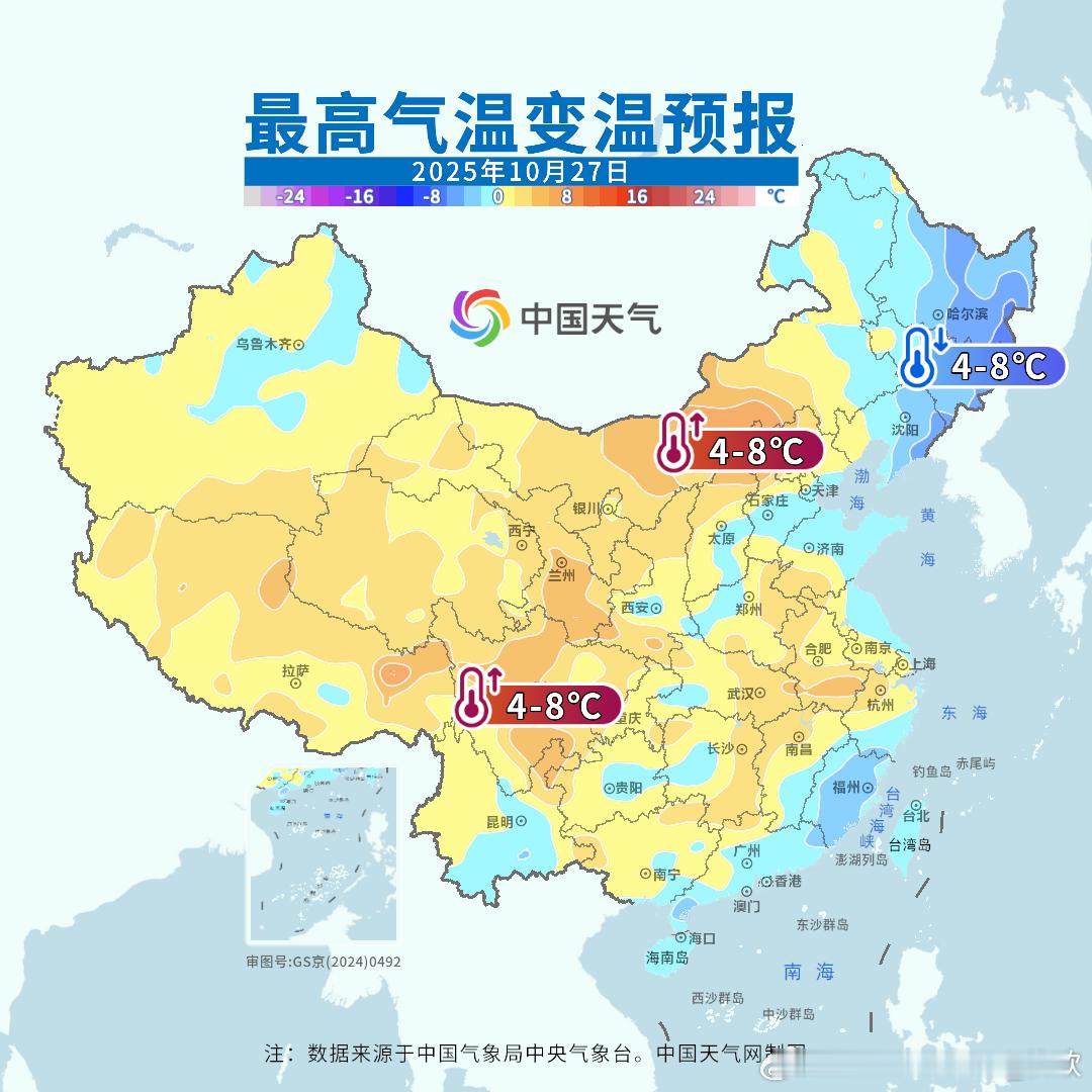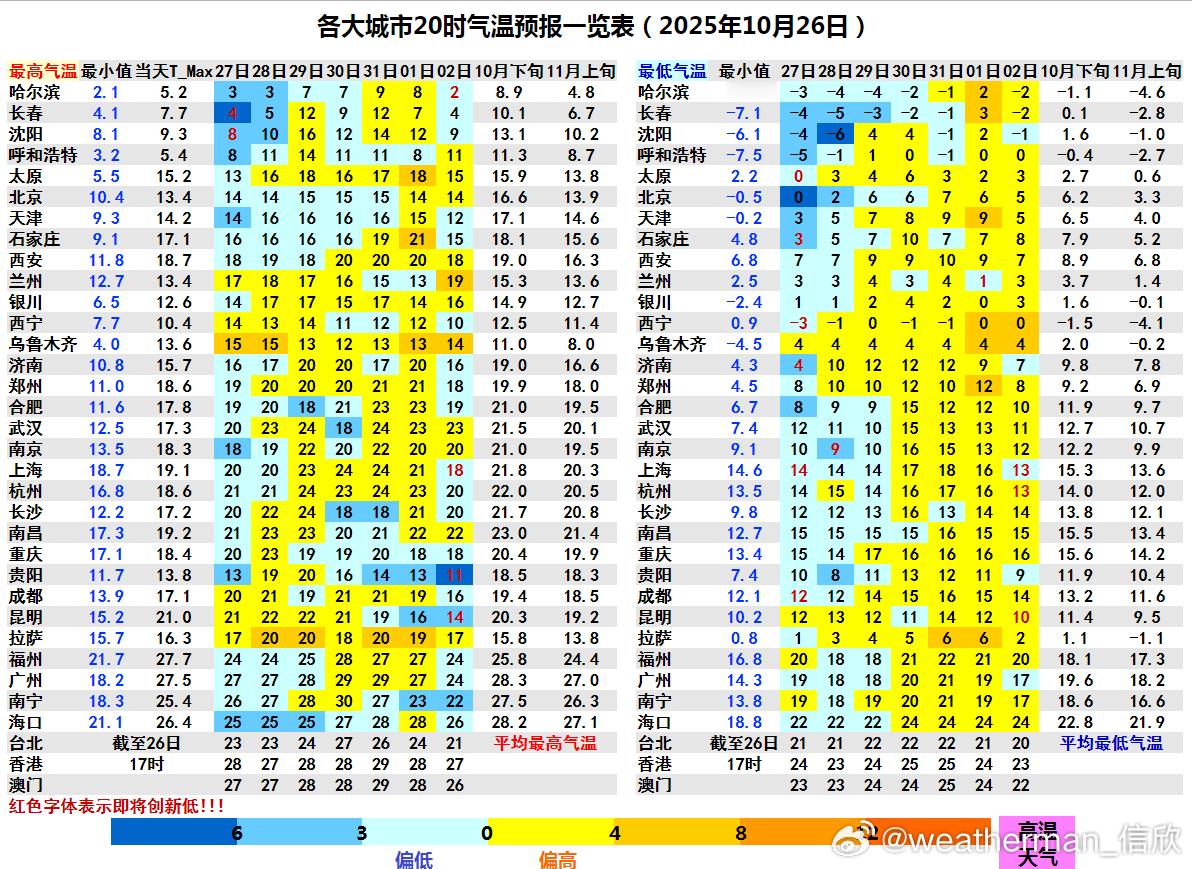 【气温——昼夜温差加大】未来3天,气温总体上升温比降温多,白天升温比夜间升温多,因此昼夜温差会加大,不仅北方,南方部分城市温差也能超10℃。比如28日武汉11-23℃,温差12℃,贵阳8-19℃,温差11℃。常年霜降期间,就是下半年昼夜温差最大的时期。此时温差加大也不意外。