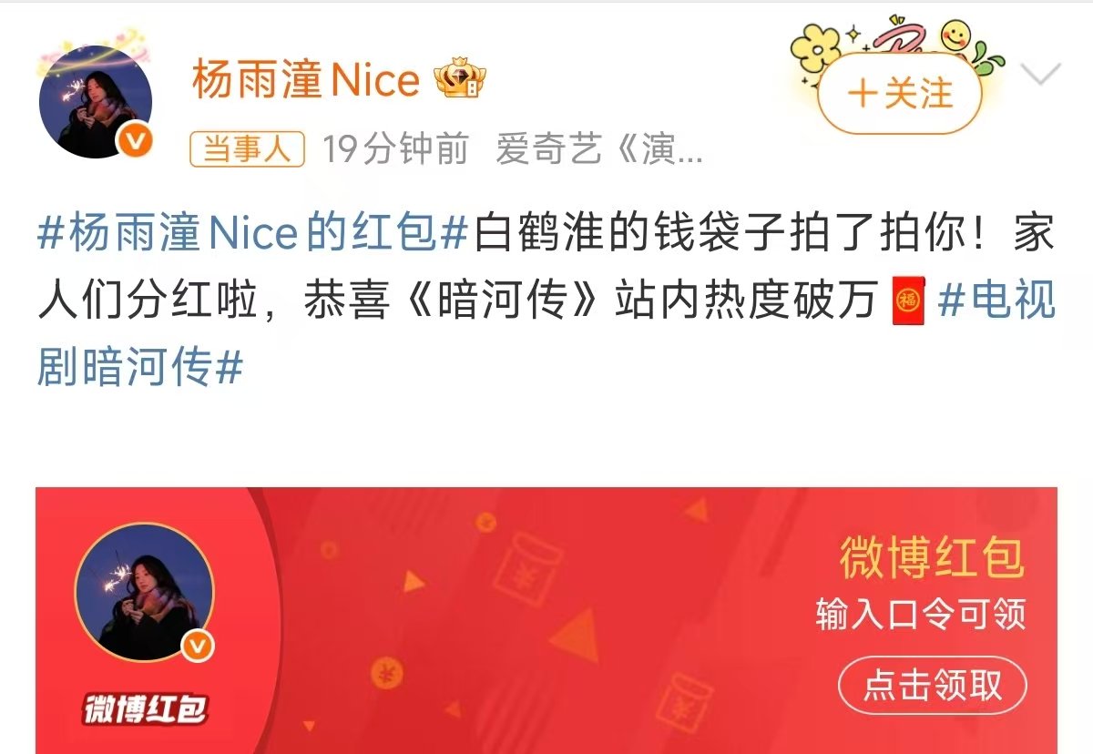 杨雨潼发红包杨雨潼红包《暗河传》热度破万,乔振宇说到做到发大红包!杨雨潼这波操作太宠粉,剧好看人还大方暗河传