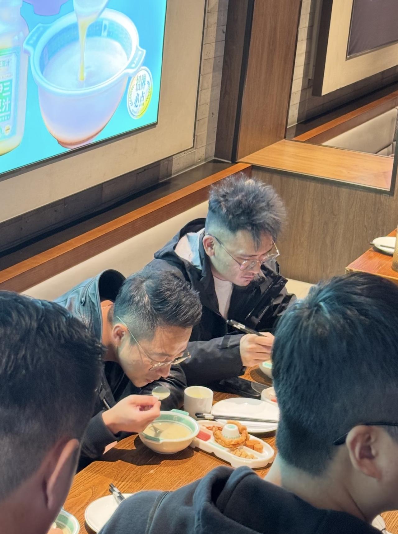 10月26日,有位网友在北京偶遇汪小菲,他现身前门一家餐厅喝豆汁的画面。 汪小菲戴着透明眼镜,身穿黑色皮衣,一桌好友边吃边聊,真的好惬意啊。汪小菲 北京