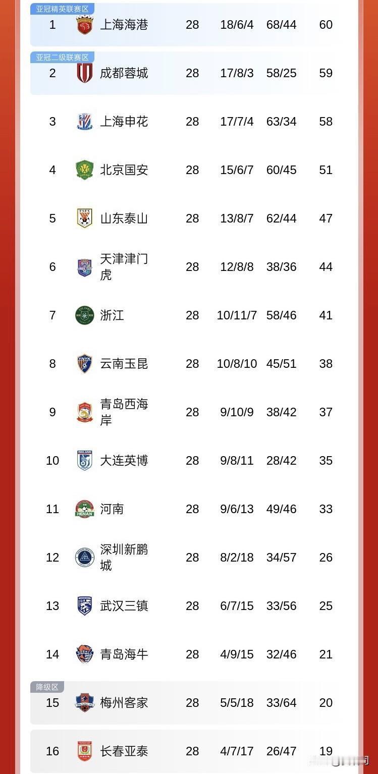 中超最后时刻的争冠与保级,看积分榜真的是乱套了,泰山主场取胜之后,上海海港失去绝对优势,成都和申花还有戏吗?青岛海牛赢了北京国安,中超垫底的成了梅州和亚泰。中超联赛 中超历史积分榜 中超