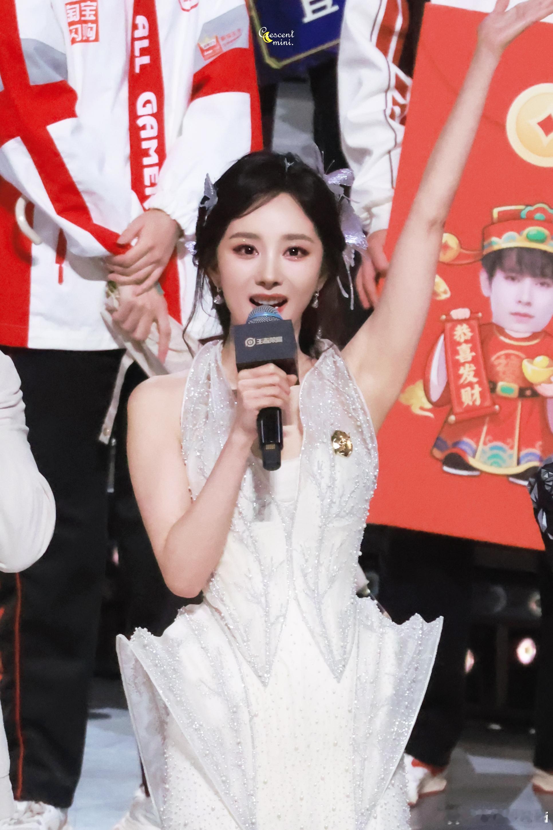 共创之夜美神降临 杨幂艾琳造型细节杀!薄纱裙摆绣着星光纹路,手持弓箭道具时眼神灵动,笑称“今天我来守发育路”,美神玩梗也这么可爱~