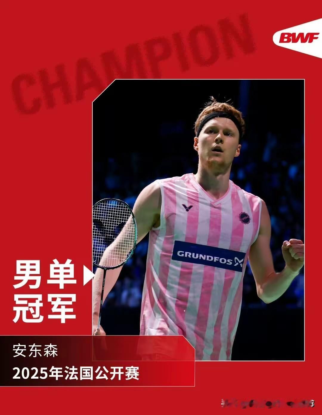昨晚结束的法国羽毛球公开赛最后一项男单决赛,淘汰了队友安赛龙晋级决赛的丹麦名将安东森,顶着东道主观众一边倒的助威声,以21-12、21-19力克小帅哥波波夫弟弟,收获冠军,赛后,又给观众展示了一次他独有的“尿不湿”庆祝动作。