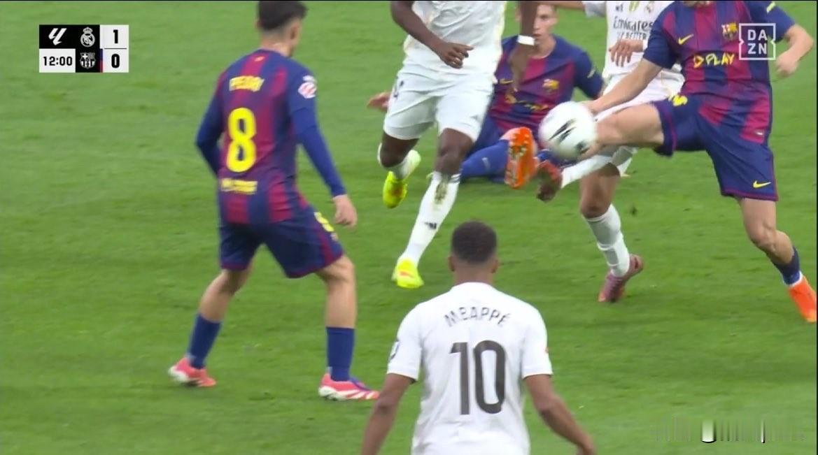 可惜了姆巴佩精彩进球被吹了。西甲裁判吹掉了这个超级远射,裁判犯了两个错误。首先,这球是巴萨球员回传,不存在越位一说。 第二,VAR划线结果是“体毛级”越位,也就是球袜的厚度那样。而且巴萨后卫脚尖踩在草皮里,可能实际位置要更靠后。