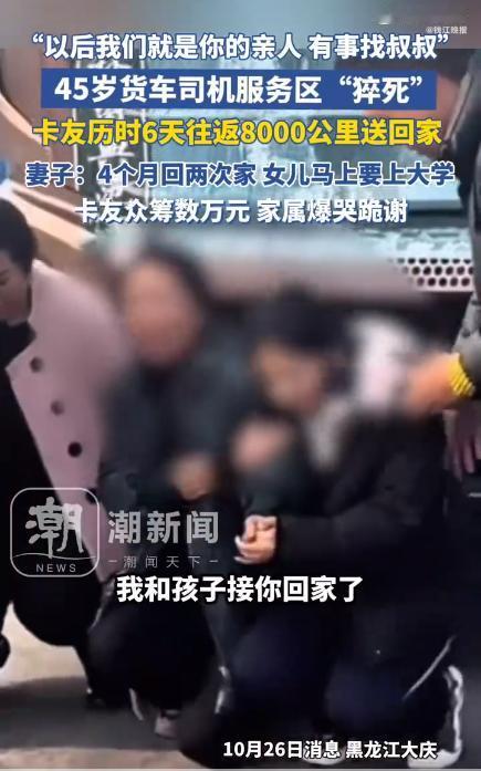 黑龙江的一名45岁货车司机贵州的服务区猝死,凌晨1点还在和自己的妻子打电话,没想到5点的时候就去世了,留下了妻子和还在上高三的女儿。司机的妻子称,这四个月他只回家过两次,生前曾和女儿约定好高考完就好好陪她。 红星新闻10月26号报道,10月18号那天,黑龙江货车司机于先生的生命,在贵州晴隆高速服务区停在了凌晨五点。 监控里,他那天凌晨上了自己的冷藏车后,就再也没下来过。   直到上午九点,远在老家的妻子谭女士发现不对劲,打了好几遍电话没人接,微信也没回复,心里一下子揪了起来。   谭女士赶紧找当初买货车的4S店帮忙,工作人员通过导航和货车GPS,很快定位到车子在晴隆服务区。   报警后没多久,警方就打来电话说找到了车,可当医护人员赶到时,于先生已经没有了呼吸,瞳孔放大,心电图显示的是一条直线。   参与抢救的邓医生后来证实,现场没有外伤,排除了刑事案件的可能,就是猝死。   于先生今年四十五岁,六月份才贷款买了这辆冷藏车,首付花了两万多,他跑货运才四个月,只回过两次家。   家里的情况不算宽裕,谭女士在学校食堂上班,女儿正读高三,马上要高考,家里的主要开销全靠他跑运输撑着。   出事前一天晚上十点,他装着一车水果从贵州出发,凌晨一点还跟谭女士通过电话,谁也没想到这会是最后一次联系。   这个消息传到货运圈里,不少货车司机都红了眼。   有个曾经跑过长途的网友说,他太懂这种苦了,贷款买了车就像背上了枷锁,不敢停也不敢歇,就怕贷还不上,家里的日子没法过。   还有人说,自己身边也有同行出过事,四十多岁的汉子,一天开十几个小时车,心梗晕倒在驾驶室里,万幸抢救了过来。   于先生的情况,其实是货车司机群体的的缩影,有数据说,大部分的长途司机每个月回家不到三天,孩子成了“车轮上的留守儿童”。   于先生答应过女儿,等她高考完就好好回家陪她,可这个承诺再也没法兑现了。   他这四个月跑了两万公里,平均下来每天要开一百多公里,月收入一万五到两万块,刚够还车贷和女儿的补习费。   为了多跑几单,连续开四五个小时车是常有的事,困了就在服务区眯十几分钟,根本不敢长时间休息。   更让人揪心的是,货车司机的身体早就被高强度的工作透支了。   密闭的驾驶室里,人更容易打瞌睡,可他们往往硬扛着,心里装的全是订单和家庭。   于先生的妻子说,丈夫身体一直挺好,没什么毛病,就是太累了,这句话戳中了多少劳动者的痛处。   大家都理解这份经济压力,上有老下有小,贷款要还,生活要顾,不拼命不行。   可再难也得记住,身体才是第一位的,尤其是家里的顶梁柱,一旦倒下,整个家就塌了。   于先生走后,遗体在二十二号火化,爱心团队帮忙把货车和他的骨灰一起送回了黑龙江老家,谭女士和女儿还要慢慢处理后事,面对没有他的未来。   现在提起疲劳驾驶,很多人都有话说。   有人说交通法规里明明规定连续开四小时要休息二十分钟,可真执行起来太难了,货主催单催得紧,晚到了要罚款,谁愿意冒这个险。   也有人说,不是不知道累,是不敢停,停下来一天,房贷车贷孩子的学费就没着落。   于先生的事过去快十天了,他的货车应该已经停在了老家的院子里,可还有无数辆货车在公路上奔波。   那些车轮滚滚的背后,是一个个家庭的期盼,也是一个个疲惫的身影。   希望每个在路上的人,都能多给自己留一点休息的时间,别让生计压垮了生命。