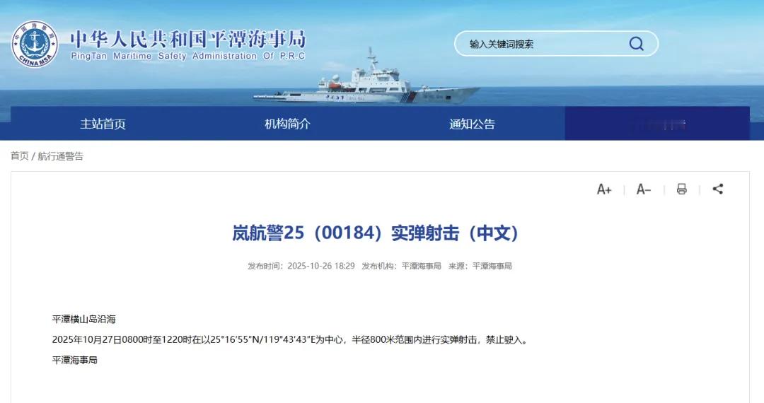 福建平潭横山沿海组织实弹射击训练,禁止驶入