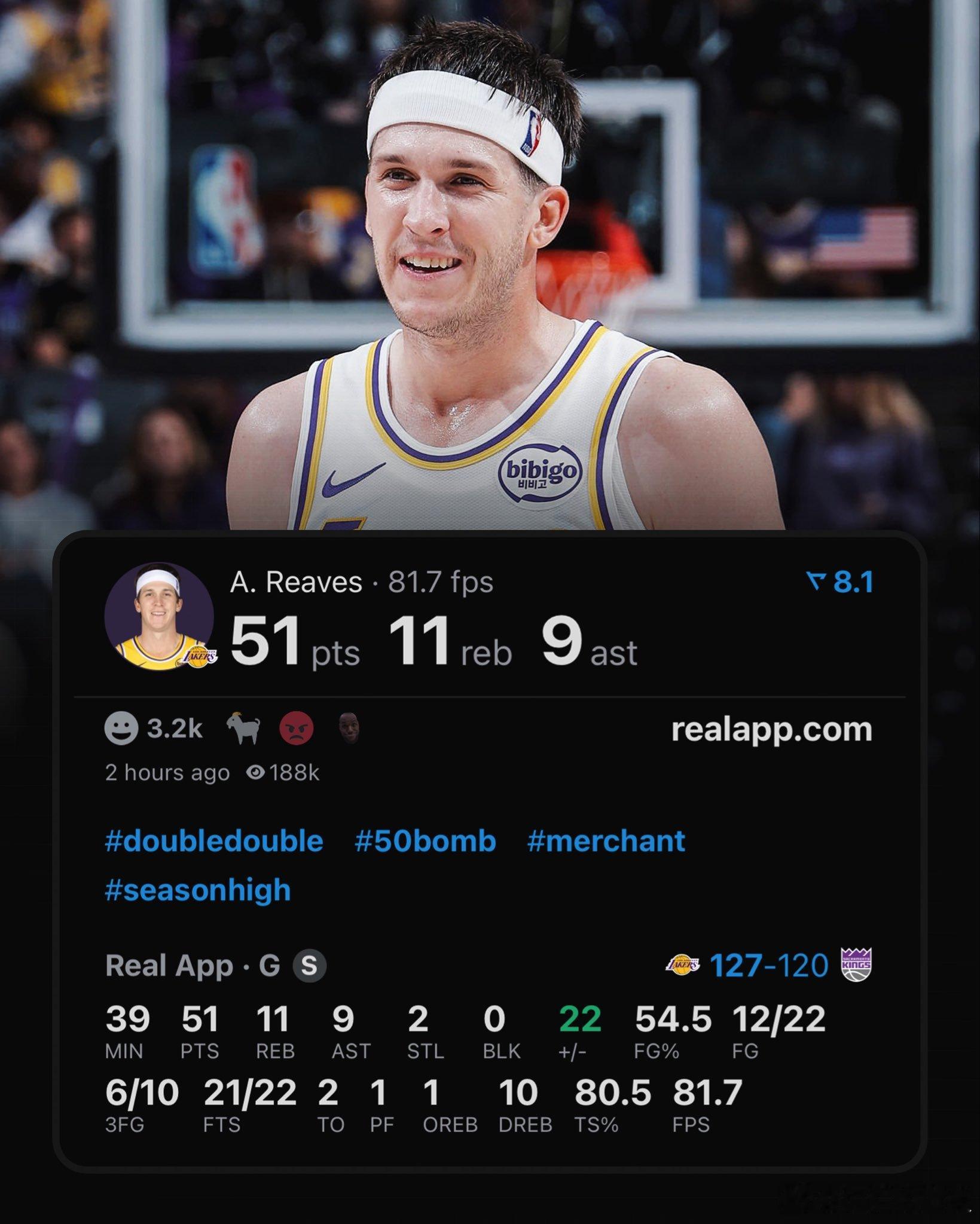 里弗斯生涯之夜!爆砍51分10篮板9助攻!带领湖人127-120战胜国王!