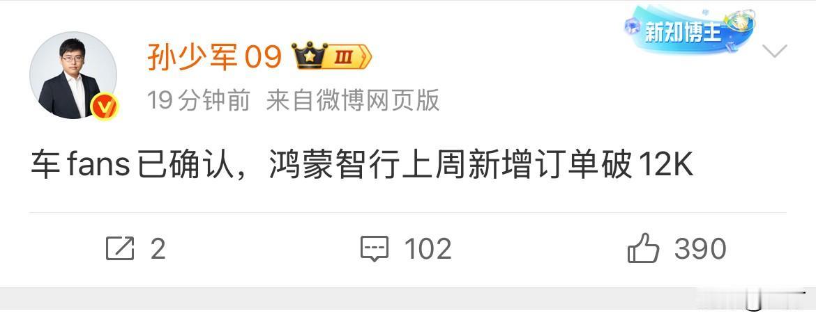 孙少军:车fans已确认,鸿蒙智行上周新增订单破12K ! 就在刚才,孙小军把上一周鸿蒙智行旗下所有车型的订单发出来了,但是这个数据并不包含尚界。 要知道,这可是国庆之后的第三周了,可以说是真正的淡季,尤其是相对来说表现得比较平庸的享界,这后续订单还算是扛住了,s9t能保持半年月销6000,也算是不错了。 当然,可能现在M7的准车主,多多少少还是有点烦躁的,因为他们定了车等了好几个月了,不知道他们这几个月是怎么憋住的,毕竟这个车的口碑越来越好,希望他们能在过年之前提到车! 现在他们每个月的产能也算是起来了,所以更多的时候就是看交付量了。
