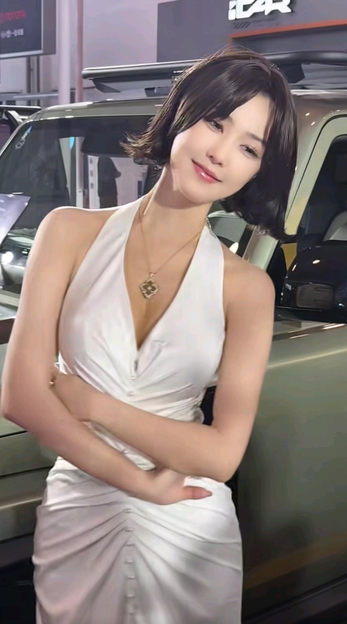车模程儿清凉夏日,白衣飘飘,笑靥如花