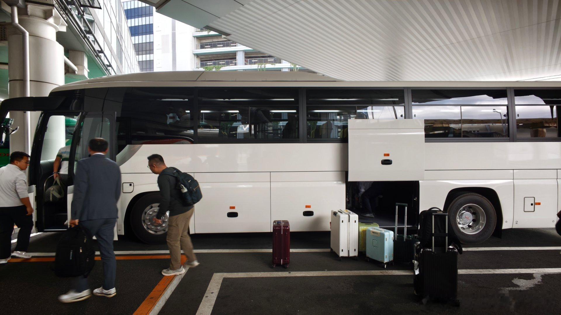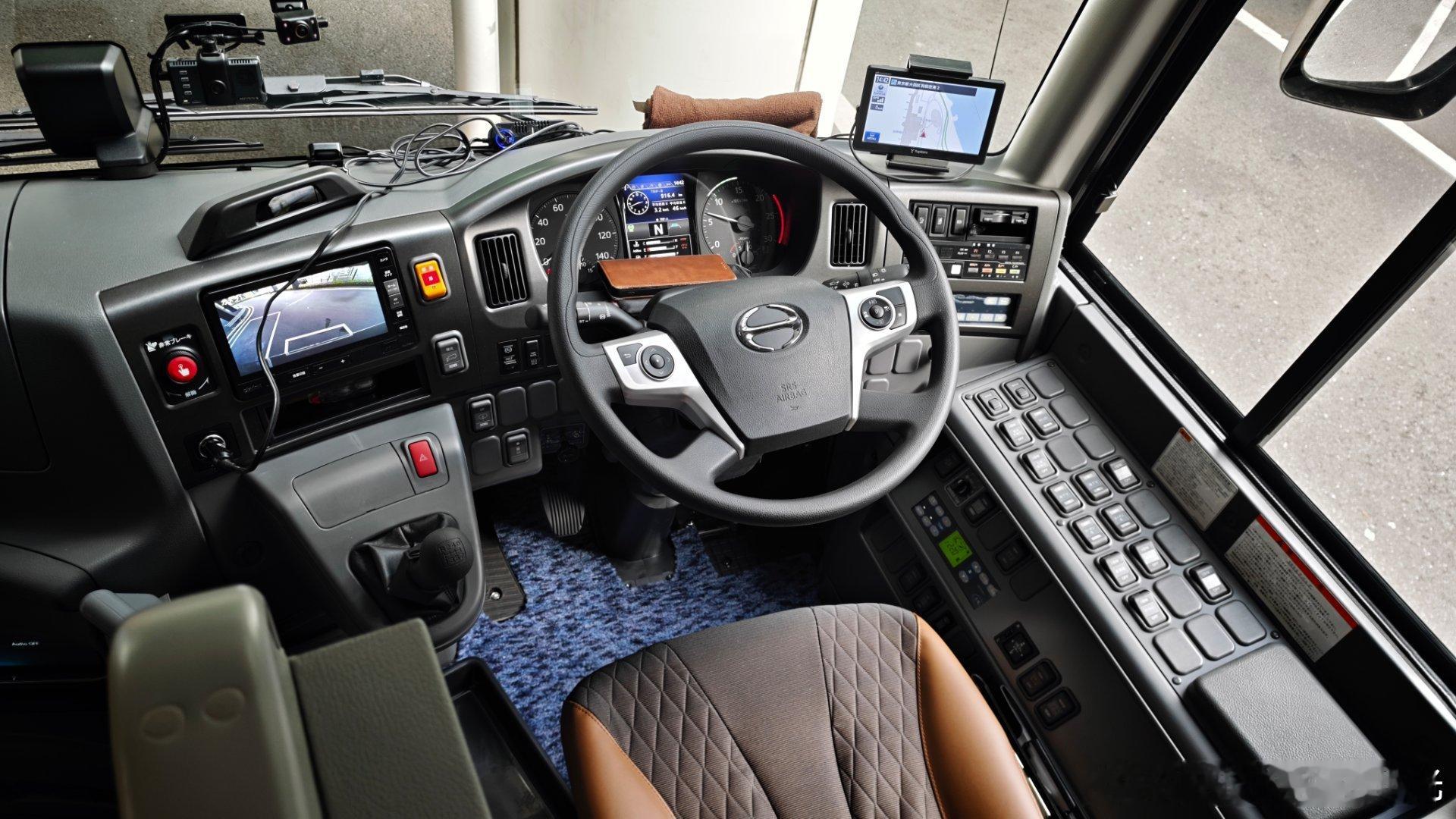 日本的大巴永远是干干净净看不出新旧。这日野还保持着能开窗和过道加座的传统,标明公司身份的线路牌一直也是个传统。左右座的安全带用不同的颜色,防止用错。每个座位带折叠背架和充电口。