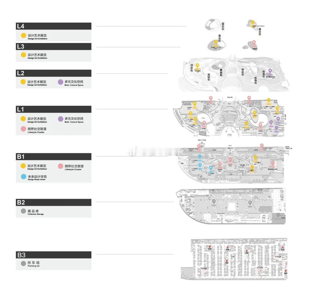总建筑面积18.8万㎡,以设计艺术展览、未来设计学苑多元文化空间、跨界社交聚落四大功能场域。