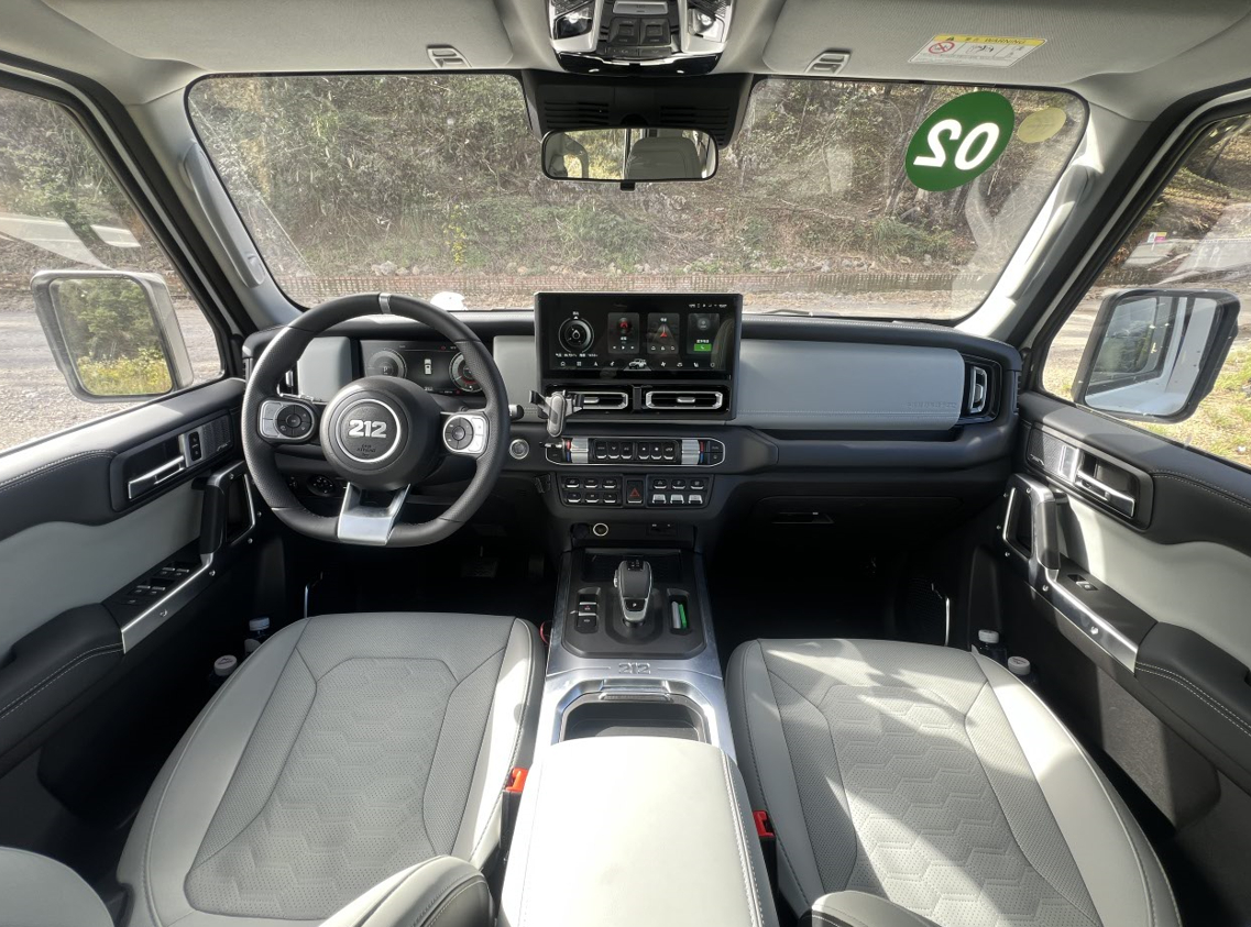 灰黑双拼的内饰配色瞬间打破硬派越野的粗犷印象,营造出越级的豪华质感。车内超过80%的区域都采用了软性皮质包裹,触碰起来都能感受到品质感;