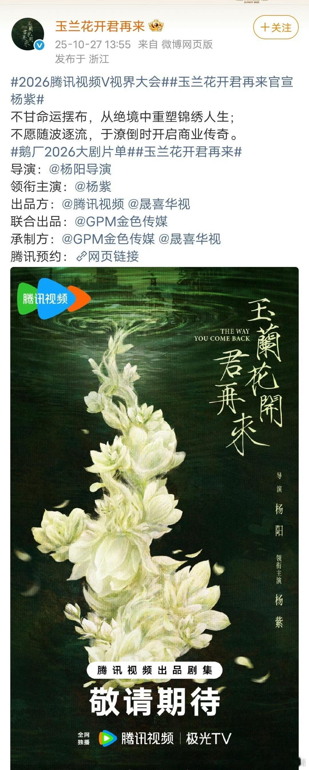 《玉兰花开君再来》女主杨紫,男主吴慷仁,这是带新人还是男主降级了