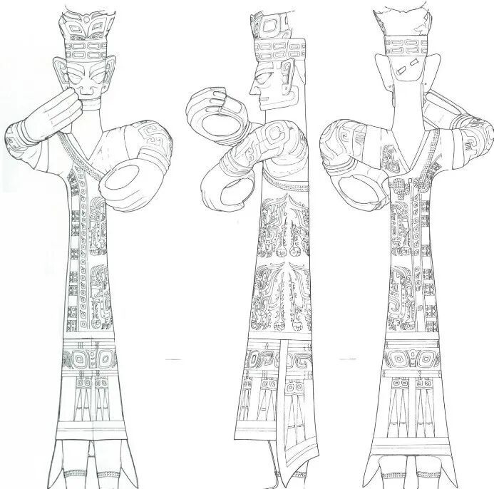 文博有意思【三星堆人已经穿上了燕尾服】三星堆丰富的青铜造像群为后人认识三星堆人的服饰文化提供了大量实物资料,其中有一类服饰穿搭特征为多层斜襟长衣,纹饰繁缛,且穿戴流程复杂。以三星堆二号祭祀坑出土的青铜立人像为代表,其身着外衣、中衣、内衣三层衣饰,饰有鸟纹、龙纹、兽面纹等纹饰,后摆为独特的燕尾形,故该衣也被戏称为最早的“燕尾服”。很明显,这不是日常生活所穿的常服,它应当是三星堆国家高级贵族在主持祭祀等隆重礼仪活动中所穿的特殊的服装。