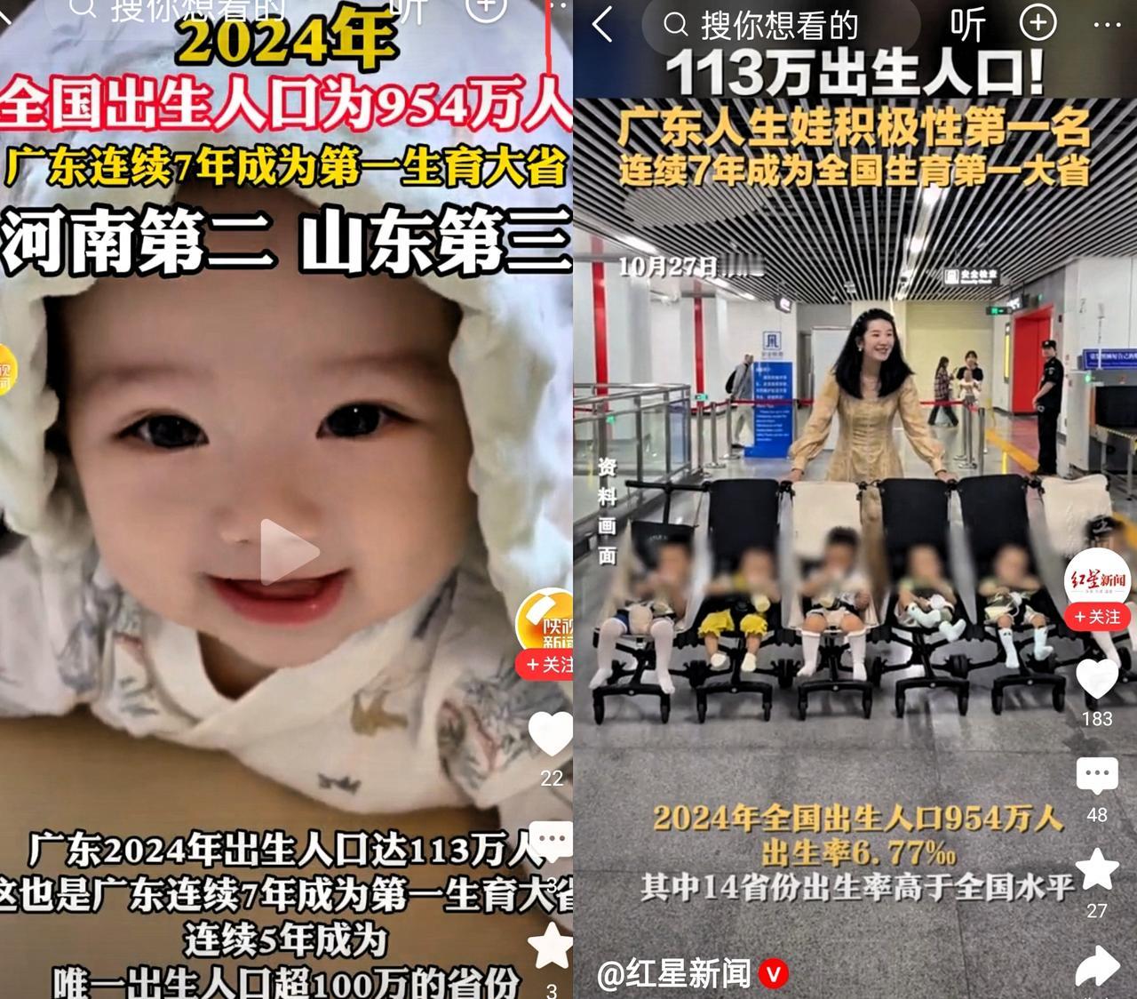 全国都在催婚催生,这省却靠“组合拳”连续7年生最多! 别再纠结怎么催年轻人生孩子了,广东早用实际行动给出了答案——2024年全国新生儿才954万,广东一己之力贡献113.3万,占了近九分之一,还连续7年稳坐生育头把交椅。 很多人以为生育率和经济发达度成反比,广东偏打破了这个定律。珠三角工厂里,月薪8000还包食宿的稳定收入,让打工夫妻敢生孩子;潮汕祠堂的“添丁榜单”,把生育变成家族传承的仪式感;更别说跨省通办结婚证、生三孩给5万奖励的实在政策,直接戳中了年轻人的痛点。 其实广东的秘诀从不是单一原因,而是把经济底气、文化认同和政策支持拧成了一股绳。不过教育内卷、外来人口入学门槛这些问题也藏在数据背后,想让“敢生”变“愿生久生”,还得持续破题。 你觉得广东这套“生育组合拳”,其他地方能学得来吗?
