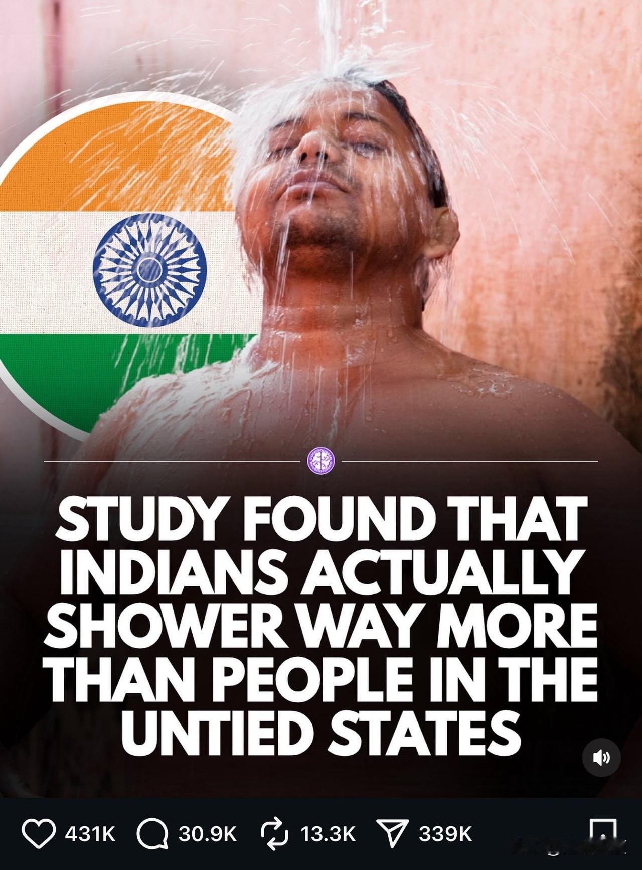 什么印度人洗澡比美国还勤快?一项调查显示,美国人一周洗澡5-8次,而超过90%的印度人时常为每天洗1-2次。 这些调查数据均来自世界最顶级的调研机构,比如Euromonitor和Kantar。 最近到印度村落参加扔牛粪节的美国网红小哥,便引用了该报告。由于他直播了一次带浓厚味道的印度传统节日,令印度全球形象大跌而被印度网民围堵。他引用后还说了一句:【我很抱歉,印度……】 他指的抱歉,可能是继续要冒犯印度了——因为印度人真实洗澡的情况可能不是大家理解的那样,相当于小哥又揭露了次印度真相。