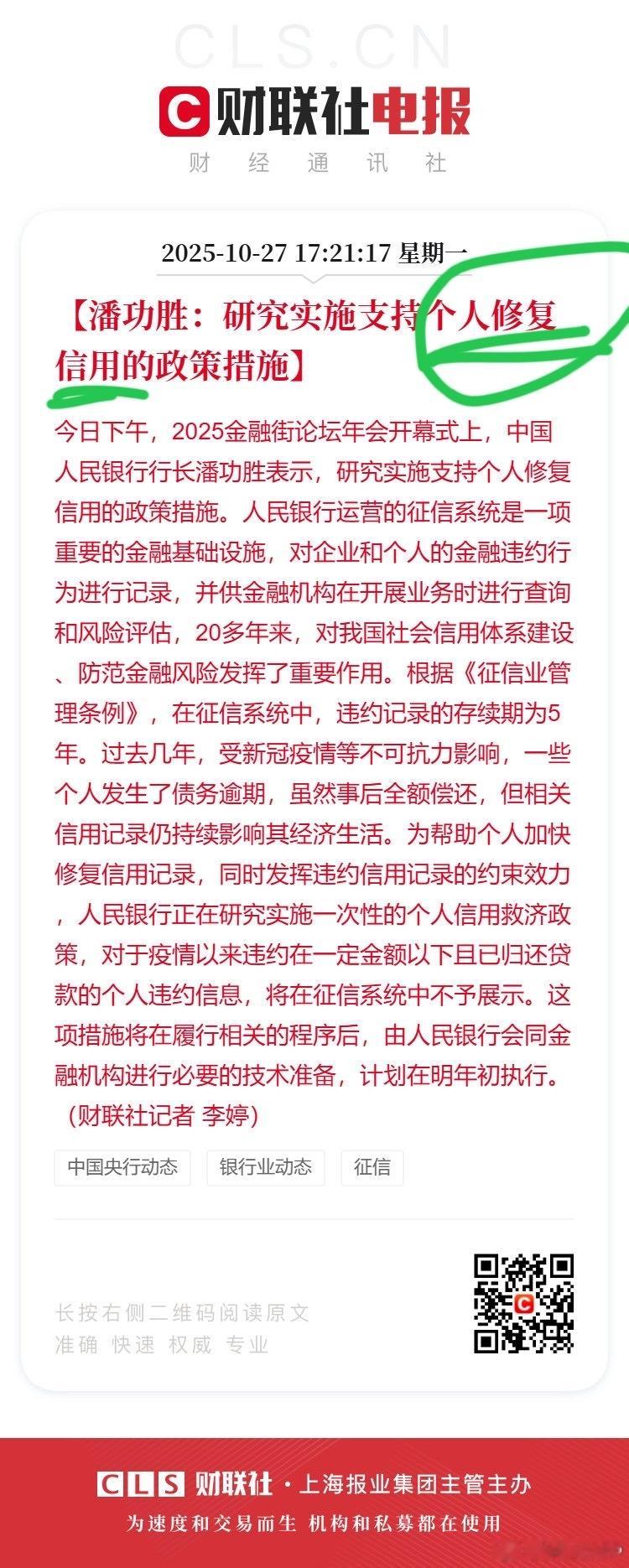 【潘功胜:研究实施支持个人修复信用的政策措施】