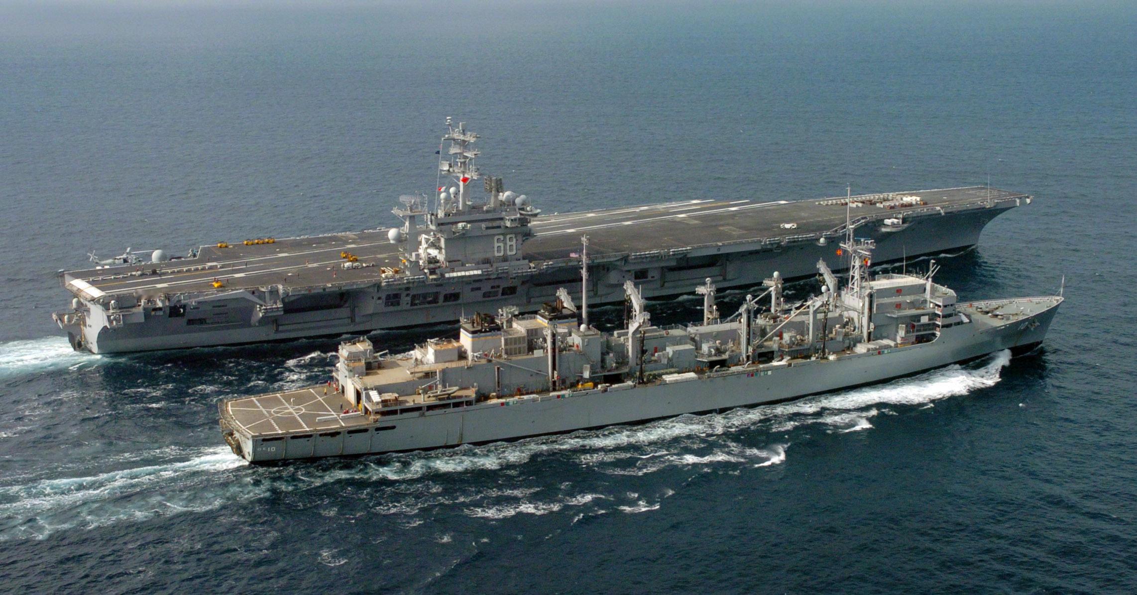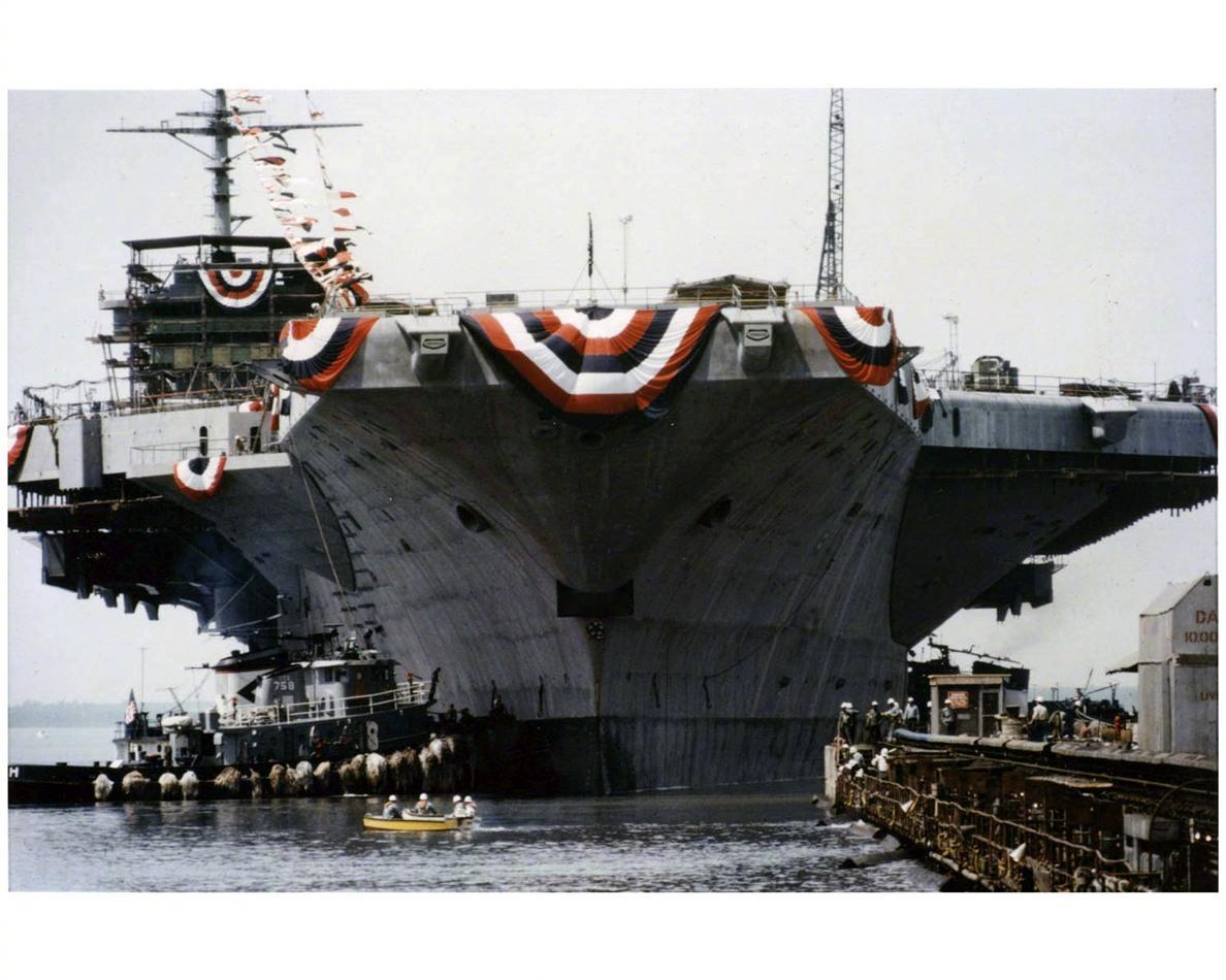 尼米兹号(CVN-68)核动力航母,同级首制舰,1968年6月22日铺设龙骨开工建造(图1,1968年的草绘艺术图),1972年5月13日于纽波特纽斯造船厂建成下水(图2),1975年5月3日服役,已经是从军整整50年的老爷爷了。