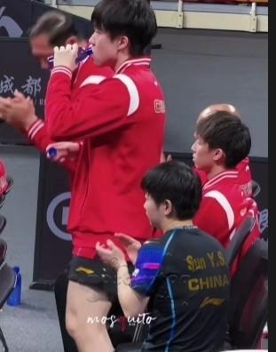 头哥,你也太客气了吧!拿水让妹妹帮忙嘛!毕竟她离得很近,一伸手就可以拿到。2923年成都混团世界杯赛场边,莎莎和头哥紧挨着坐在一起沉浸式看队友打比赛。忽然头哥站起来,绕过莎莎伸手拿了一瓶水,站着喝了几口后坐下。其实水就在莎莎旁边,只要头哥说一声莎莎一伸手就可以拿到,但是头哥还是选择自己亲自站起来去拿。可能不好意思麻烦同事吧?