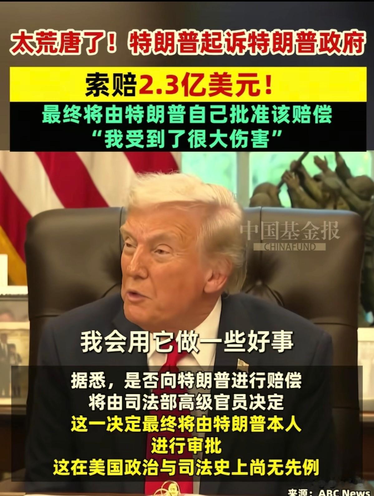 要论“搞钱”,特朗普排第二,哪个敢排第一?老美的诉讼和搞钱方式,特朗普玩得是一套一套的。这不,特朗普起诉特朗普政府,因被美政府调查和起诉,索赔2.3亿美元。如果这次索赔成功,这将是美国史上最奇葩的索赔。荒谬至极! 有人说,到现在才明白为什么美国没有腐败贪污了。光明正大“搞钱”那么容易,贪腐岂不划不算?聪明人都晓得“正规途径”赚钱!