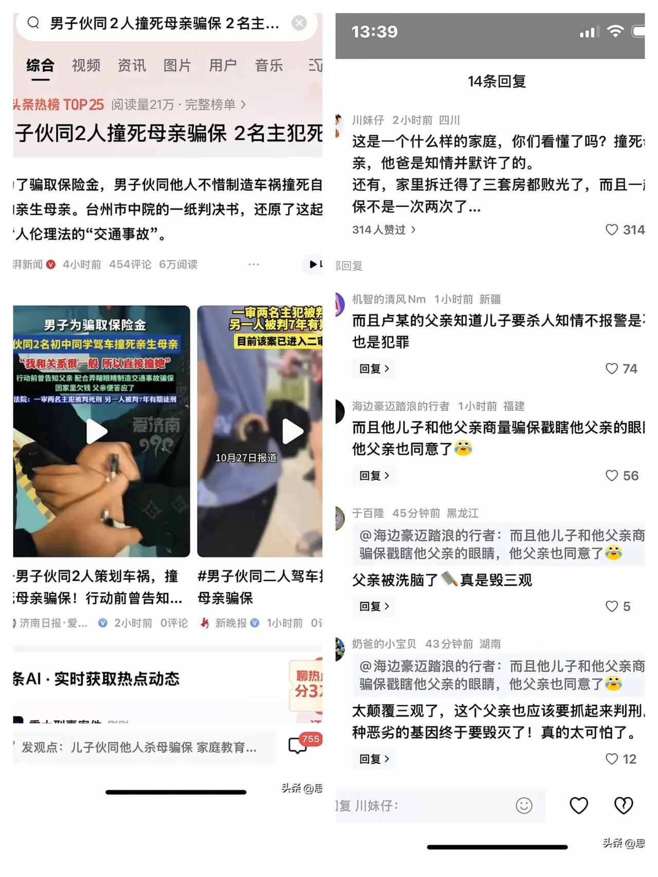 真的要被浙江这起弑母骗保案恶心到浑身发冷! 23岁的卢某哪是儿子, 分明是披着人皮的恶魔,为了钱连亲妈都能下死手,更可怕的是亲爹居然默许了这一切。 这已经不是简单的恶了,是彻底被欲望吞噬的人性崩塌。先是偷光母亲31万的事故赔偿款挥霍一空,没了钱就动起骗保的歪心思,先戳父母眼睛未遂,转头就策划车祸,把亲妈骗到无监控路段让同伙撞死,自己站在一旁冷漠观望,还说出“和她关系一般,所以撞她”这种畜生话。 死刑判决虽解气,但这背后的问题更戳心:被“大哥”操控的盲从、父母教育的缺失、亲情在金钱面前的溃败,才养出这样的怪物。家本应是避风港,在这家人身上却成了屠场。 真的想不通,血脉亲情怎么就抵不过一时的挥霍欲?你们觉得这种泯灭人性的恶,根源到底是哪里出了错?