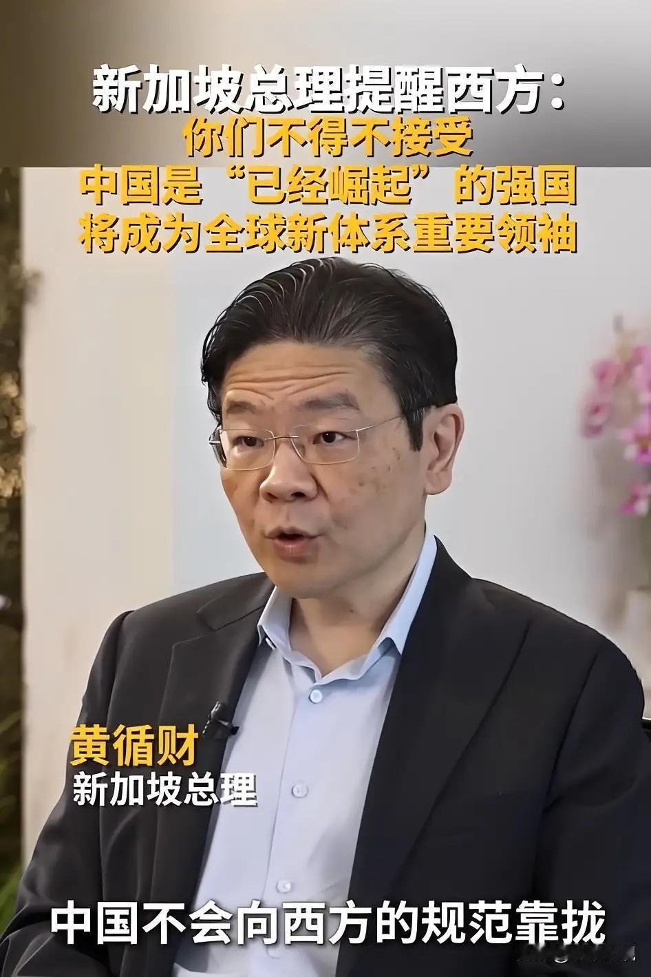 这就是国家强大了,全世界都得跟着转变的连锁反应! 新加坡总理黄循财在受访时向西方明确喊话,必须接受中国以世崛起的强国,不会靠拢西方规范,且将成为全球新体系重要领袖,同时提醒西方需以平等务实态度看待这一必然的格局变迁。 新加坡总理黄循财的话说白了就是替大家点透,中国不会跟着西方的路子走,要走自己的道,而且现在中国早不是正在变强,是实打实已经抢了,不管是科技,高端制造还是新能源这些领域都拿出了真本事,国际社会就得认。 其实咱们中华文明本来就牛了几千年,从没断过档。 先秦时候我们造青铜器的手艺世界第一。 汉唐时打通丝绸之路,长安就是全世界的贸易中心。 宋元的活字印刷多厉害。欧洲刻一本圣经要几个月,咱12个小时就搞定。 明清时咱们早早就是试射水雷、凿出油井,比欧洲,俄国早了几百年。 可惜晚清那会,清政府太糊涂,让我们受了近百年的屈辱。 从以前的屈辱到现在重新变强,所以我们才叫复兴。本来就是拿回我们该有的位置,现在国力上来了,全世界自然的重新认识我们。 其实不只是新加坡,很多国家都看明白了,现在不是西方说了算的时代了。