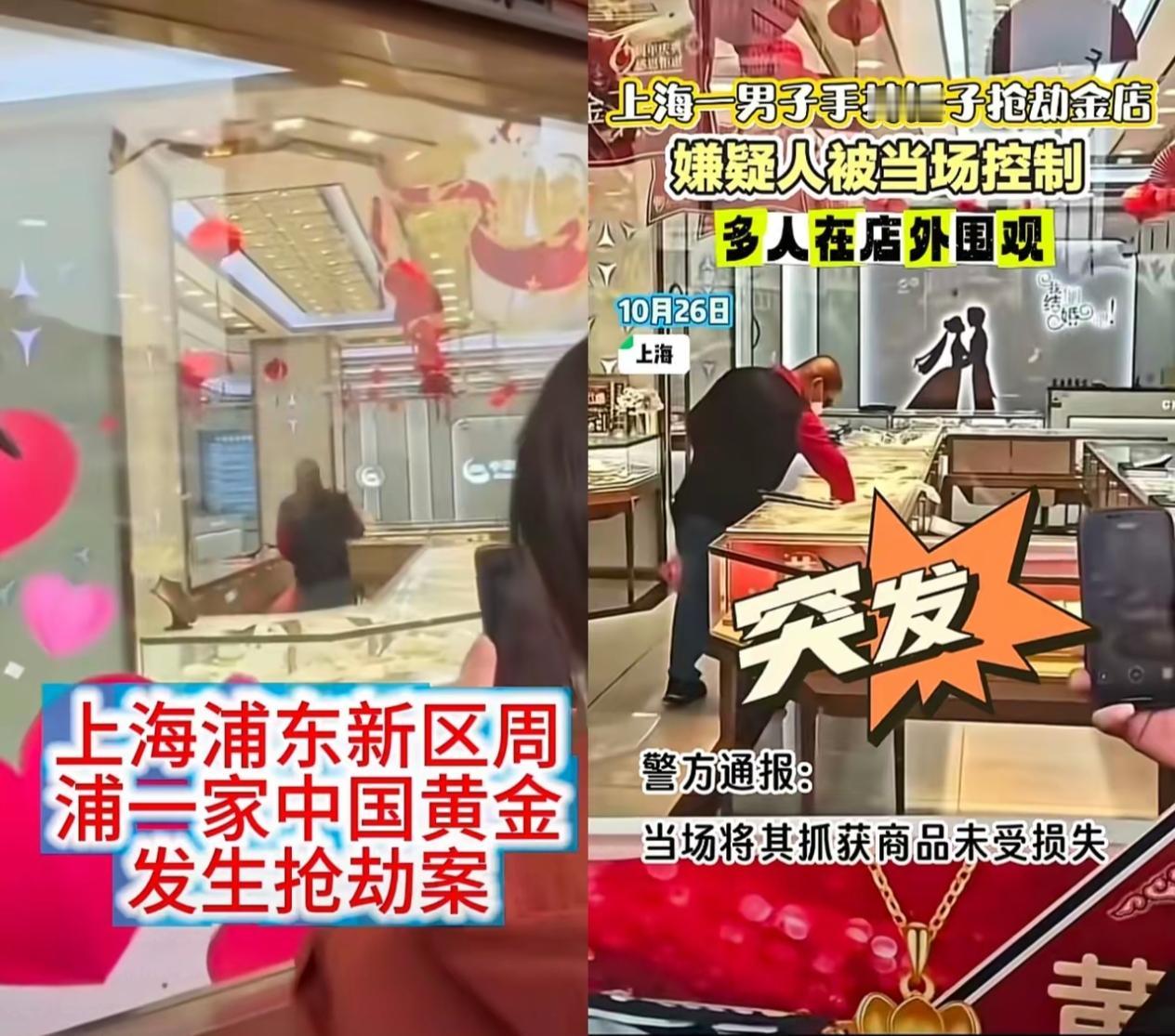 上海这起金店抢劫案,看完真让人鼻子发酸。 10月26号上午,周浦一家中国黄金