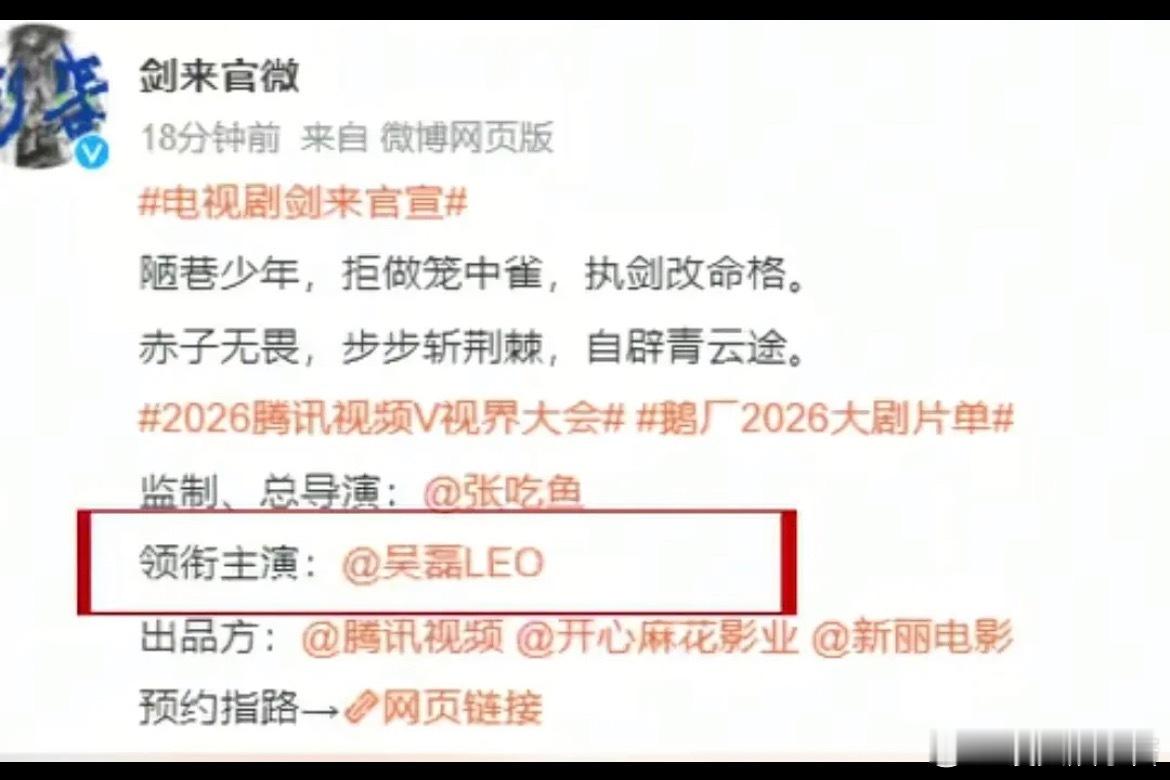 吴磊的《剑来》宣了,男主单独官宣,这算是妥妥的大男主吧!剑来官宣吴磊