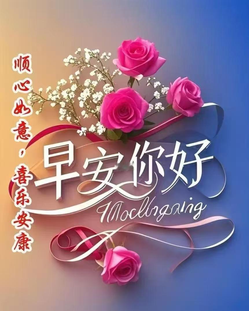 願我們都能: 一天开开心心, 一月平平安安, 一年健健康康, 一生幸幸福福, 一世顺顺当当, 一家和和美美。 早上好![玫瑰]