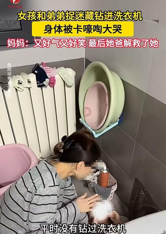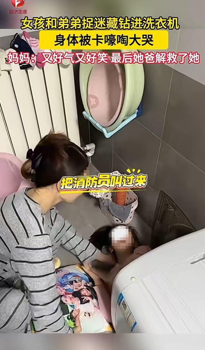 “这下后悔了吧!”10月27日,河南濮阳,一女孩和弟弟玩捉迷藏时钻进洗衣机,结果下半身被洗衣机卡住嚎啕大哭,喊妈妈去找消防员,边哭边说以后再也不钻了,网友:又好气又好笑! 小孩子调皮,玩捉迷藏时总喜欢往各种意想不到的地方钻,为了能赢完全不考虑后果,等到出不来了才知道后悔! 一女孩在家和弟弟玩捉迷藏,轮到女孩藏时,她心想自己一定要藏到弟弟找不到的地方,女孩四下看了看,眼睛瞥到了一旁家中不用的洗衣机,她灵机一动,决定藏在这里面。 由于洗衣机比较小,不能完全盖住女孩的身体,于是她将自己的双腿折叠使劲挤了挤,以一个奇怪的姿势钻进了洗衣机里,随后盖上了顶上的盖子。 女孩的弟弟一番寻找后果然没找到她,正当女孩为自己的胜利沾沾自喜时,她突然发现自己的下半身被卡在了洗衣机里,任凭自己怎么扭动也抽不出来。 这下女孩可着急了,她嚎啕大哭,焦急地呼喊妈妈,女孩边哭边让妈妈找消防员叔叔劈开洗衣机救她,还哽咽地说着自己再也不钻洗衣机了。 最终,女孩父亲回家后慢慢将女孩的腿折叠了一下,才将她成功解救出来,妈妈检查了一下,女孩的身体没有大碍。 不少网友表示对这个调皮的女孩真是又好气又好笑,俗话说人教人教不会,事教人一边就会,估计经过这件事后,女孩再也不敢到处乱钻了! 信息来源:《孩子玩捉迷藏,钻进洗衣机出不来,嚎啕大哭》AHTV第一时间