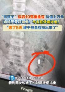 “不作就不会死!”10月27日,江苏昆山,一11岁男孩将妈妈的10克金豆子含在嘴里玩,谁知他一个不小心竟然把金豆吞了下去,妈妈天天嘱咐男孩不要在外面上厕所,网友:在外面如厕的代价有点太大了! 半大男孩正是调皮的时候,他们往往想到什么有趣的事情就会立刻做,根本不考虑后果,一些危险物品照样往嘴里放。 一男孩拿着妈妈万元购入的10克金豆子把玩,他突发奇想,打算用这颗金豆子锻炼自己舌头的力量,于是男孩将金豆含在嘴里转圈。 不料,由于男孩舌头转动速度太快,不慎将金豆顶到了嗓子眼,随后他直接将金豆子吞了下去,这可把男孩吓了一跳,他想到电视剧里一些“吞进自杀”的情节,哭着跑去告诉妈妈自己吃了金豆子,可能要“死”了。 妈妈一开始还以为男孩在开玩笑,没想到竟然是真的,她十分无奈,打算让男孩自行排出,害怕金豆遗落在外,还天天嘱咐孩子不能在外面如厕。 五天之后,男孩还是没有排出金豆,妈妈带他来到了医院,好在当天下午金豆子被顺利排出,男孩的身体也无大碍。 不少网友表示,男孩这要是在外面如厕时排出金豆子,这个代价未免也有点太大了,贵重物品一定要妥善保管,也要提醒孩子不要做出危险的行为! 信息来源:《11岁男孩误吞10克金豆,妈妈:天天叮嘱他不要在外面大便》大象新闻