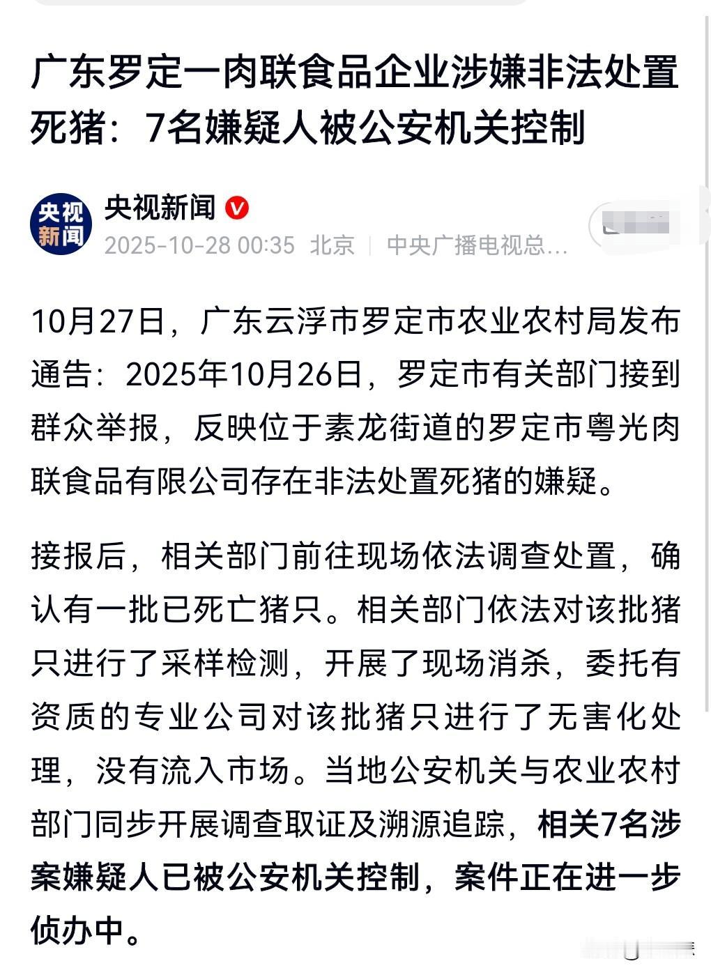 这真是细思极恐啊,竟然收购了这么多死猪,这要是流入市场,真的是太丧心病狂了。 幸亏被及时发现,有关部门将这些死猪进行了消杀。 近日,广东罗定市,一肉联公司门口堆满死猪,7人被控制。 要好好惩罚这些丧心病狂的人。 竟然收购这么多死猪。 实在是太利欲熏心了。肉联公司门口堆满死猪 7人被控制