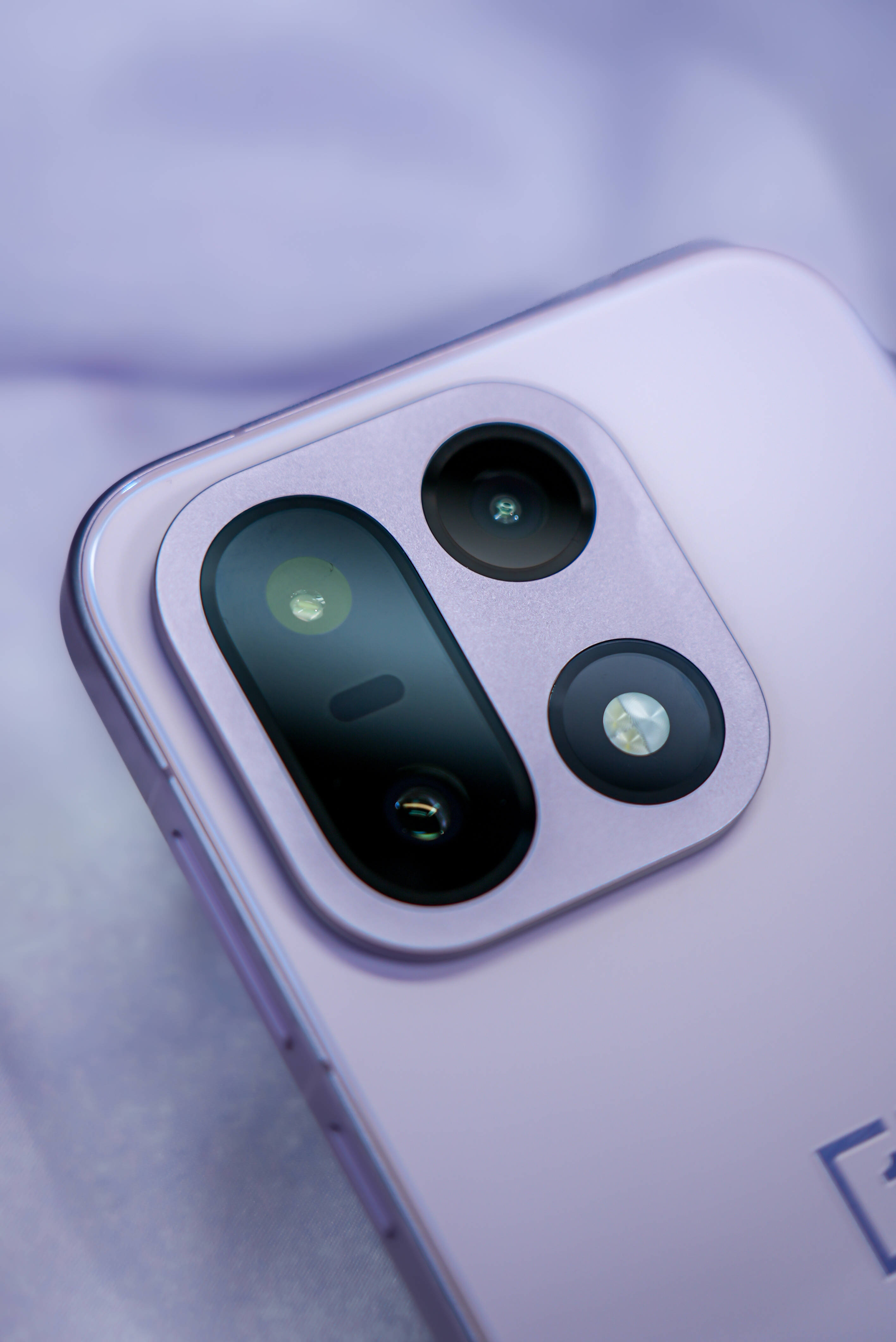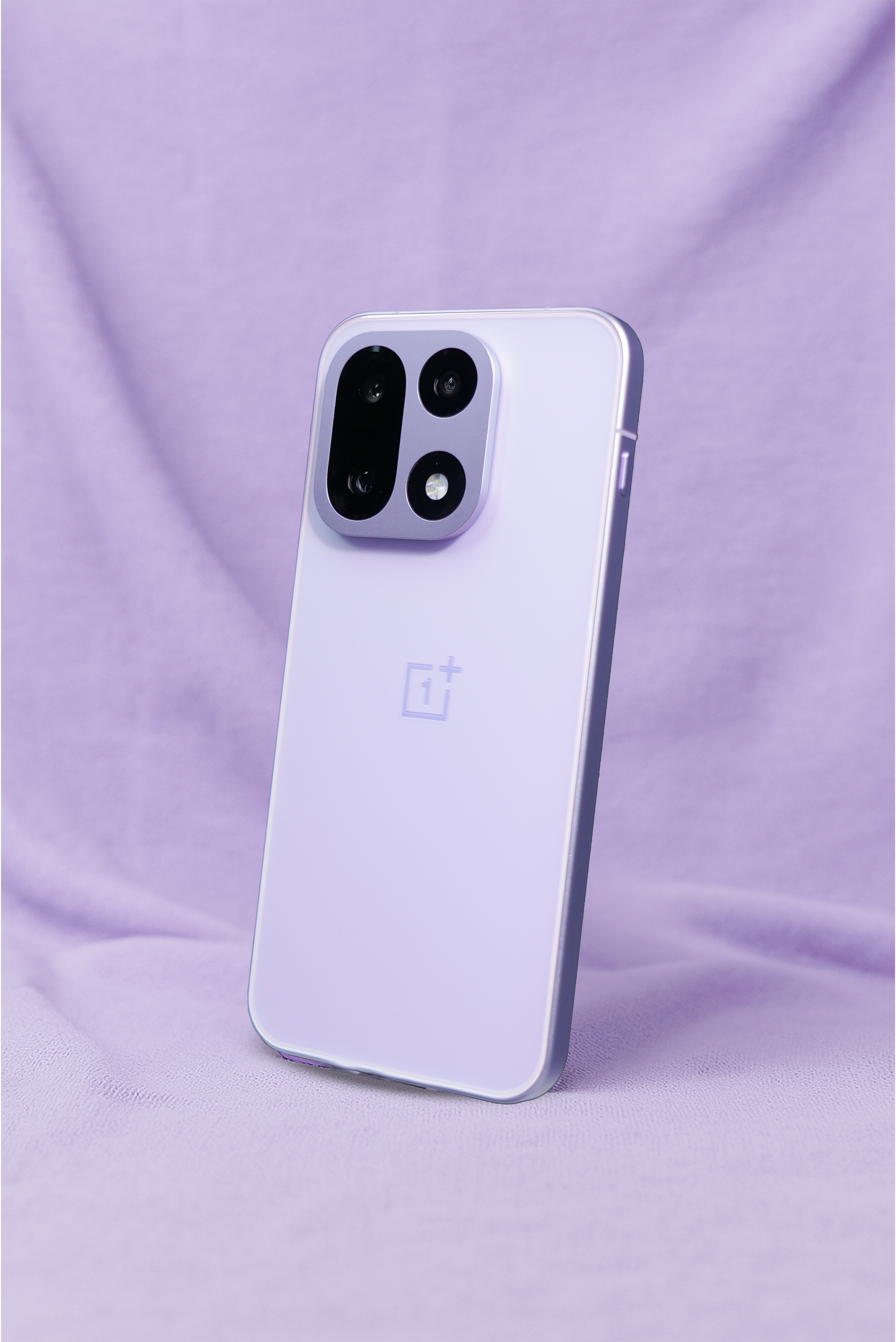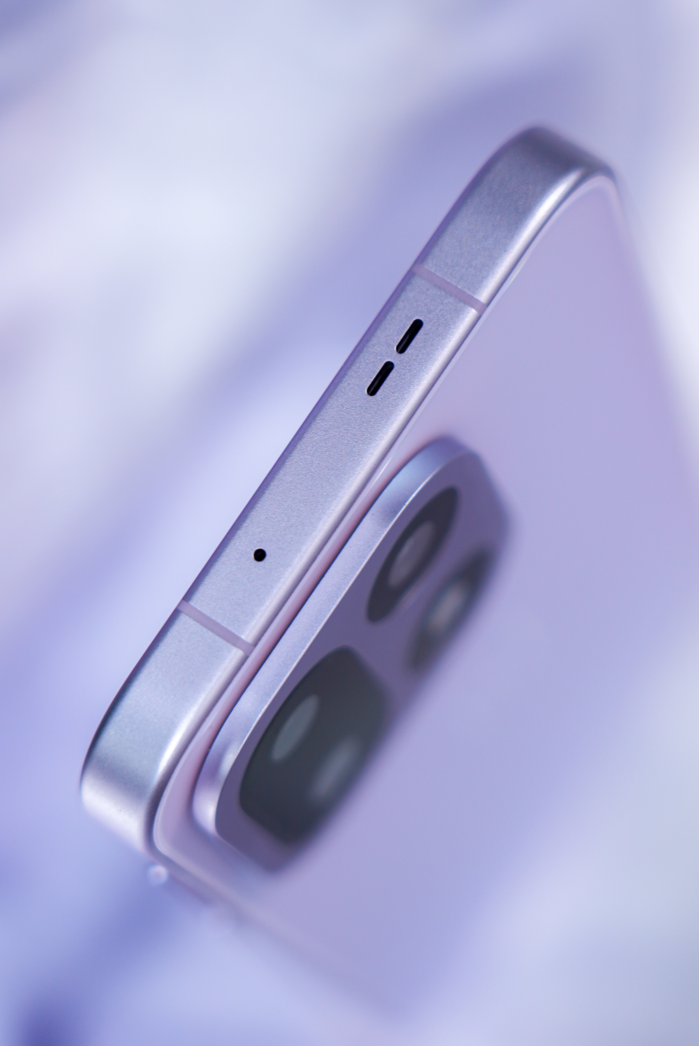 一加 15 「雾光紫」配色的这个双维流光工艺挺好看的,看着是非常淡雅的雾面紫色,转动时还能看到一些变化。这种 AG 雾面不沾指纹,握感还不错。算是一个挺耐看的配色。