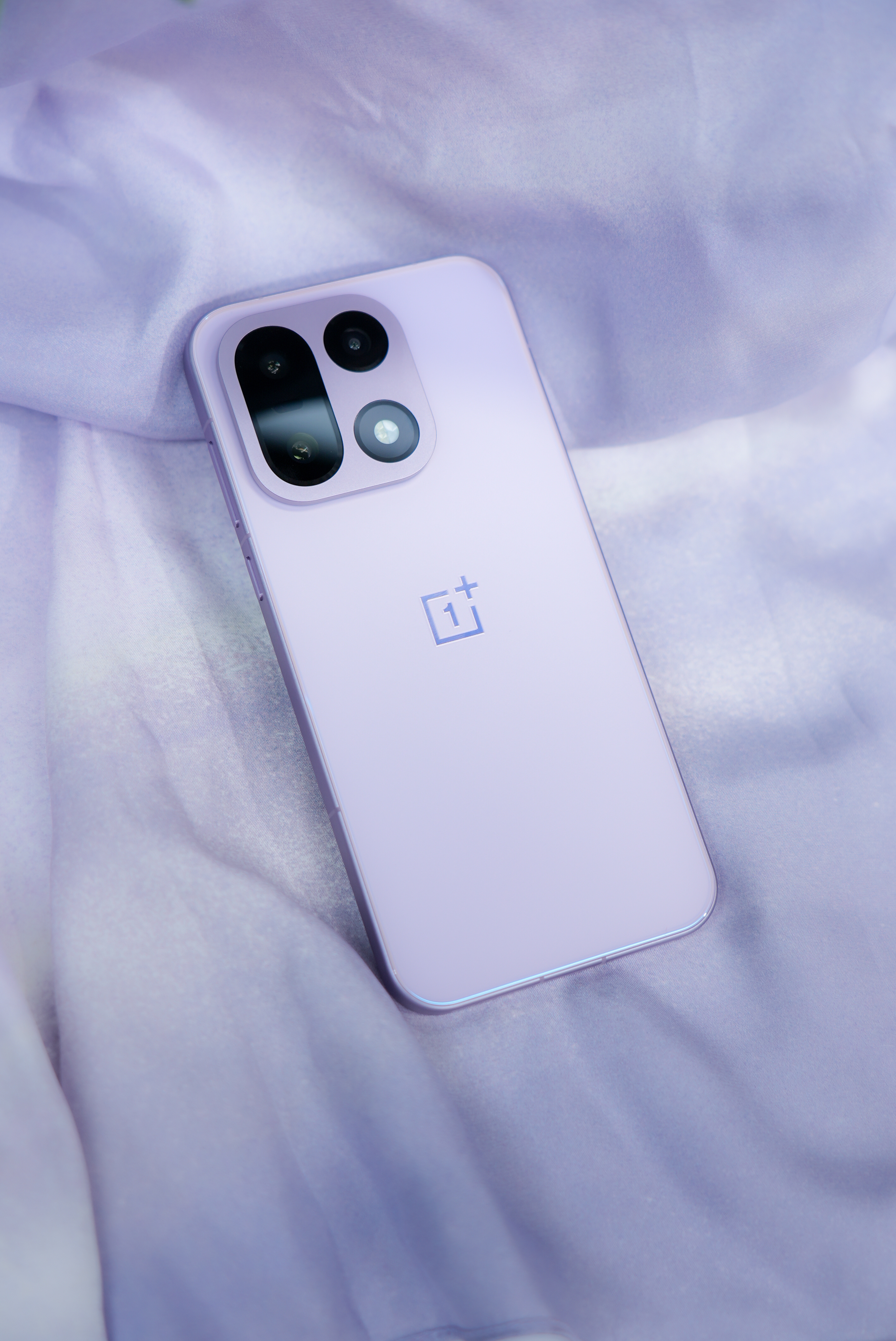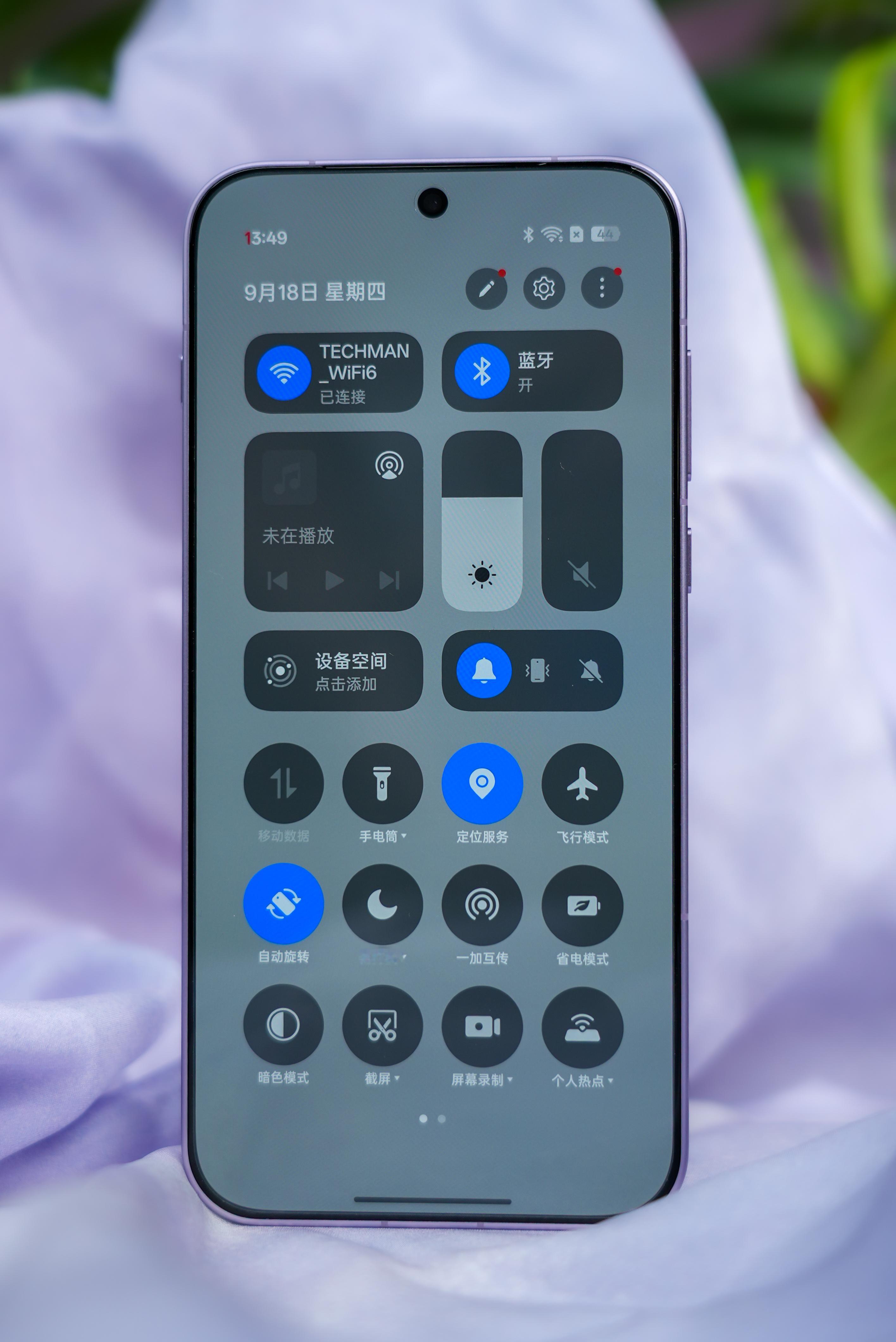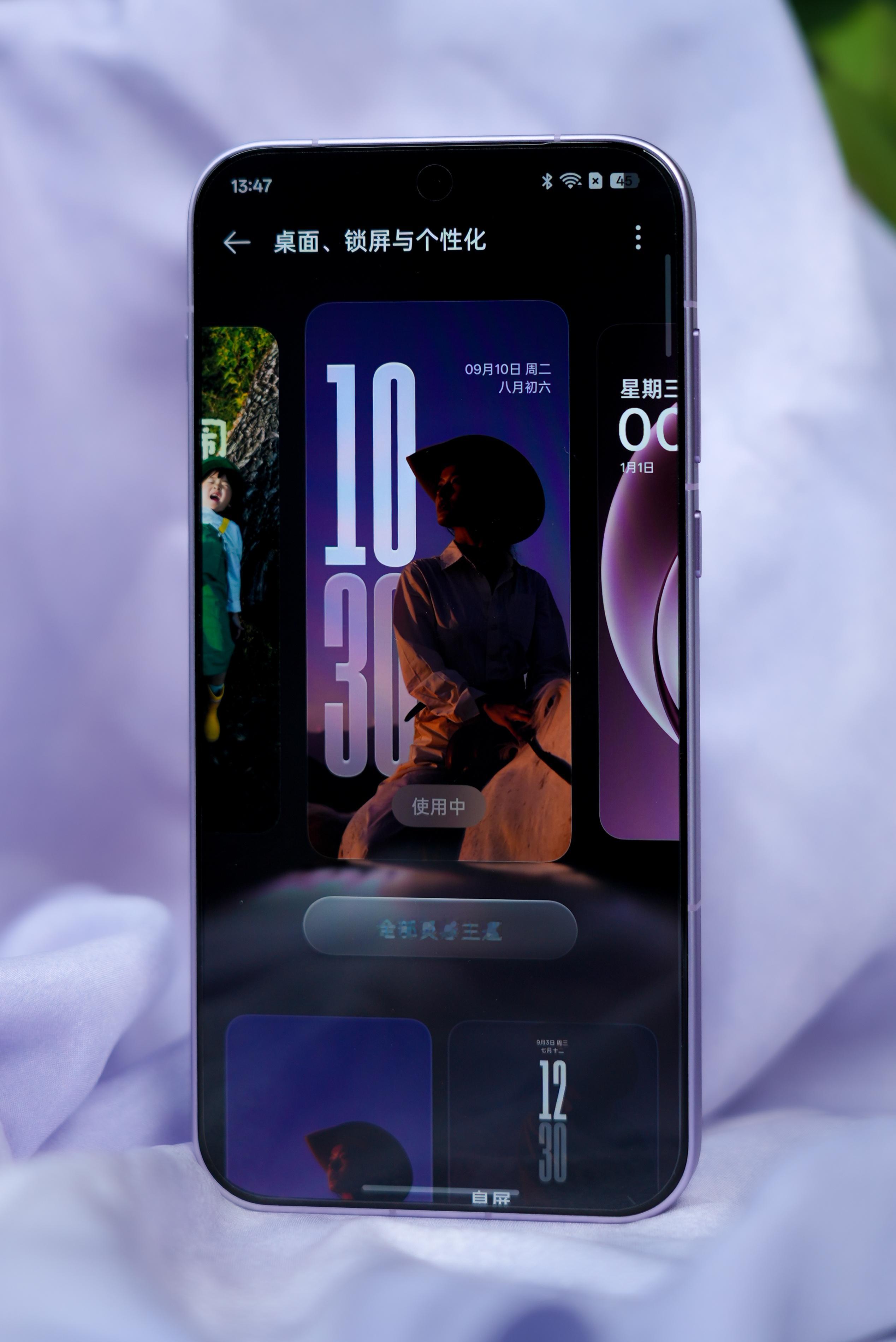 一加 15 「雾光紫」配色的这个双维流光工艺挺好看的,看着是非常淡雅的雾面紫色,转动时还能看到一些变化。这种 AG 雾面不沾指纹,握感还不错。算是一个挺耐看的配色。