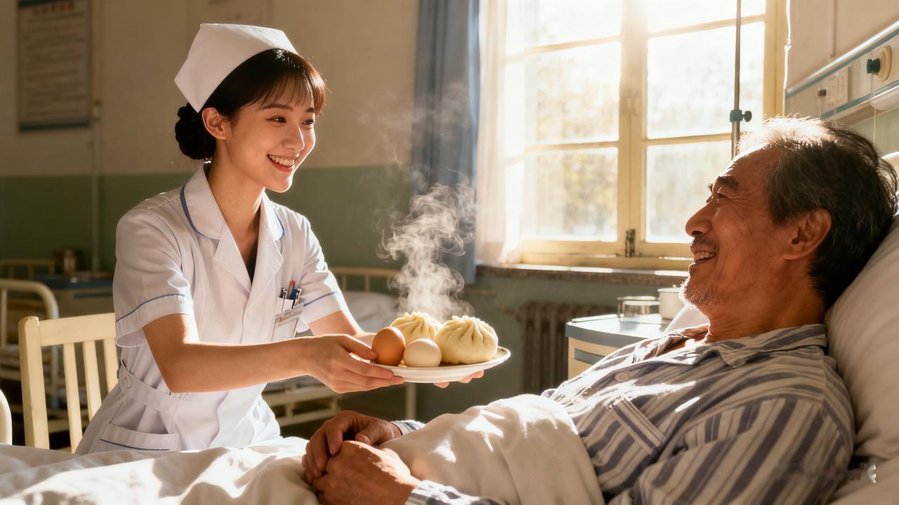 这个女护士真美! 辽宁鞍山的一间病房里,护士小李如常巡房时,目光落在了靠窗的病床上——年过六旬的张大叔孤零零地躺着,被子叠得整整齐齐,床边没有陪护的身影,连个放水杯的小桌都空荡荡的。 细问之下小李才知,大叔子女远在外地,老伴走得早,这次住院全靠自己硬扛。更让人心疼的是,大叔格外节俭,从家里带来的盒饭反复加热能吃两三顿,有时为了省点饭钱,干脆就不吃晚饭。小李听着,心里一阵发酸,默默记下了大叔的情况。 从那天起,小李巡房的脚步总会在大叔床边多停留一会儿。早晨交班后,她会顺手把自己带的热包子、鸡蛋塞给大叔;中午打饭时,特意多要一份菜端过去,笑着说“食堂今天菜多,我吃不完”;晚上查床,还会拎着一袋洗好的水果,陪大叔唠几句家常,问问他身体舒不舒服,要不要帮忙倒杯水。 这天,小李又端来刚热好的饭菜,大叔看着眼前冒着热气的粥和炒青菜,再看看小李额角的汗珠,突然红了眼眶。他攥着小李的手,声音发颤:“姑娘,你比我亲闺女还上心……”眼泪顺着皱纹滑落,滴在温热的饭盒上。 病房里的阳光洒在小李身上,她笑着摆手说“应该的”,可那抹温柔的身影,早已比阳光更暖人心——这世间的美,从不是光鲜的外表,而是藏在举手投足间的善良与真心。护士 护士温情照