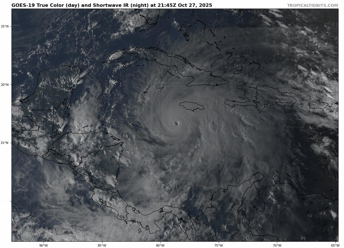 【五级飓风梅丽莎】留存一个五级飓风梅丽莎的云图动画。图1正好是当地日落前后,可见