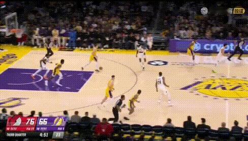 有老大味了——里夫斯摸头训话激励克内克特! 图1:里夫斯连续3分后又2+1,克内克特好乖:我可比你高。 可不得激励下嘛,人克内克特第3节拿到替补首分(图4),被训话后克内克特暴扣、罚球连得4分!湖人一波快攻追至个位数。 PS:克内克特每次扣篮都摔地(图2-3),好危险。